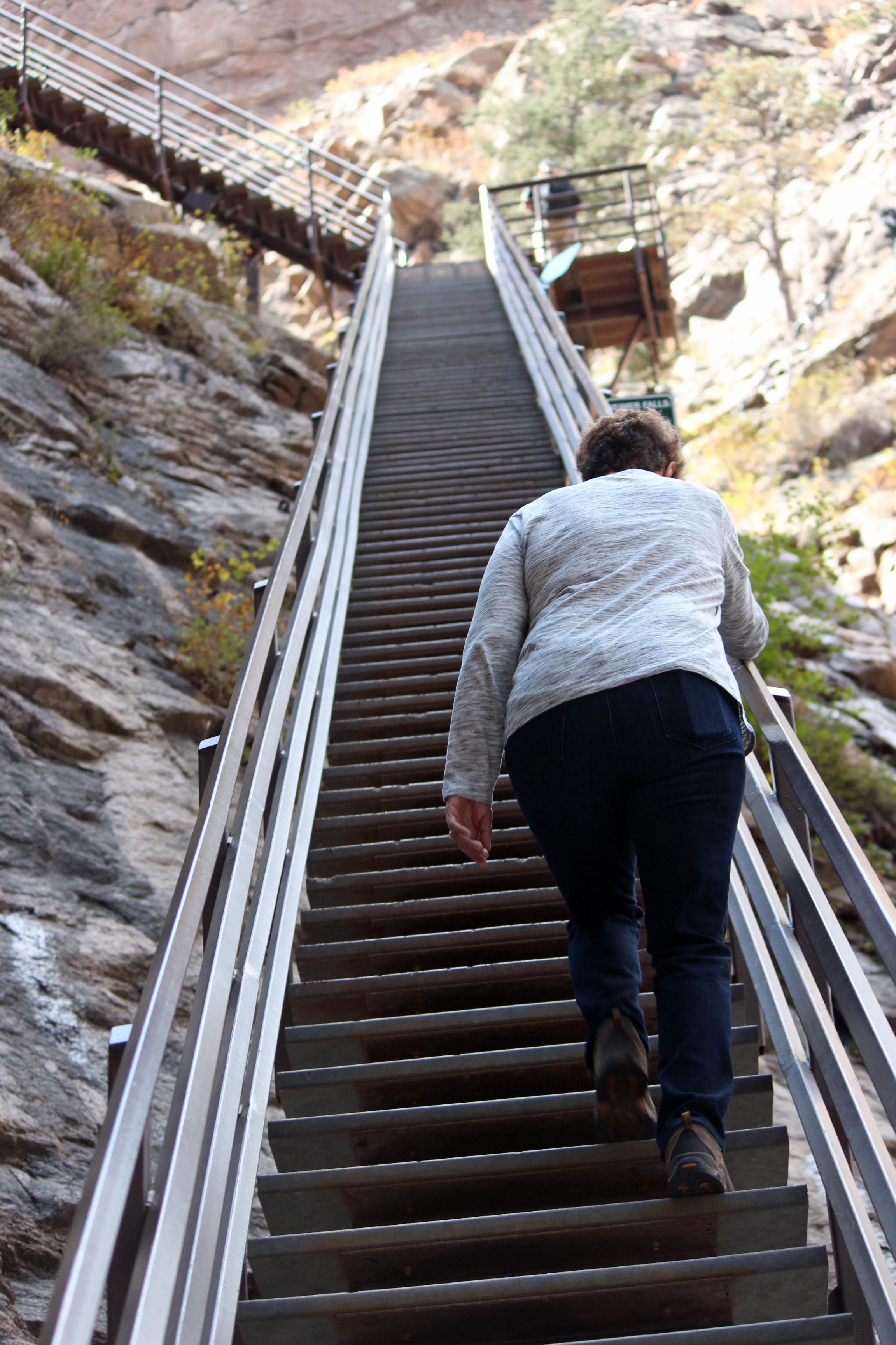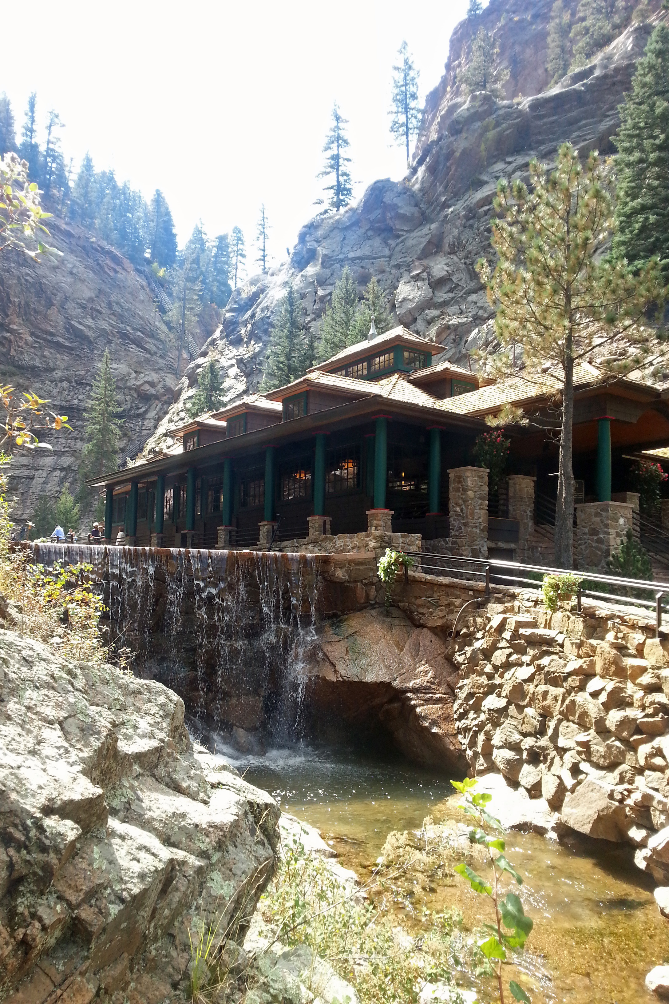 Today (Tuesday) we spent the morning at the Broadmoor Hotel and Seven Falls. The falls are a narrow gorge that is really beautiful. The creek that runs through it overflowed pretty bad in 2014 (14” inches of rain in an hour), so the owners sold to Broadmoor and it was redone and reopened. Gorgeously done and crystal clear water. After a mile walk in, we climbed the stairs to the top of the falls for a great view. We skipped another set of stairs that led to a viewing area and instead took the elevator, but it was plenty of exercise, even just going down the steps. Note to self: remember to always carry both camera lenses and bring the selfie stick.
