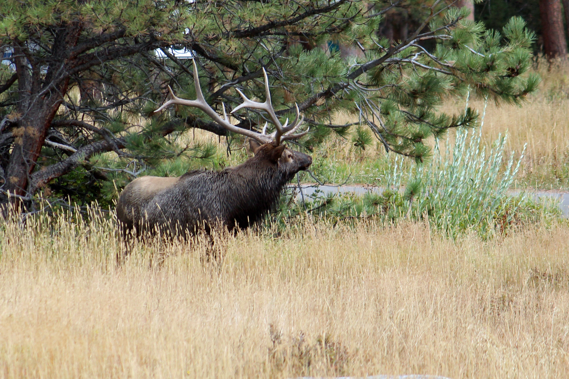 The park was very busy, which surprised us, but we were told that September is their second busiest month due to elk viewing. This is also the park’s Centennial, so I think there has been a greater push to visit the park. It was evident, as we wove our way through the many cars parked alongside the road every place there were elk. But they were spectacular beasts. The bull elk were in rut, so they were rounding up and stealing from each other’s harem of hinds (females). The younger males tried their best, but they seemed to always be on the fringes. The bugling calls of the males were heard day and night, a very eerie sound that reminds you that you are in their mountains. The aspen are all golden and orange, sprinkled among the spruce. It makes for very colorful mountainsides. Unfortunately, the spruce beetle has really taken a toll on the trees, with at least a third of the trees dead or dying.