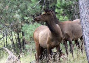Later in the week we would see one or two in other sections of the park, just grazing or sitting off the road. On one of our trips around the park we pulled off behind another stopped car and asked what they were watching. Elk. We watched a small group of females munching their way up a hillside.