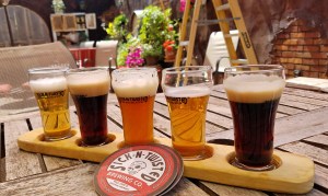 Doug was thirsty, so he had a flight of their nine beers. We both agreed their red ale was the best, even though Jackie was hoping for a robust porter.