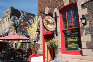 Parked the motorhome near their Civic Center and walked through a beautiful city park about two blocks from downtown. Very cute downtown, with baskets of flowers and lots of trendy shops and eateries. Found the Firehouse (literally their old firehouse) and ordered lunch.