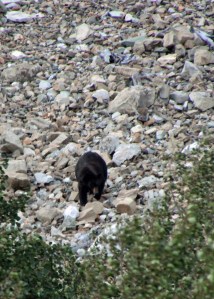 As we made our way back we were entertained by the Columbian ground squirrels who were feeding on the trailside grasses and a few really fat chipmunks (have to look up the species). Catching our breath as Jackie scanned the hillsides for mountain goats, we spotted a hoary marmot lumbering along the hillside. Good views of this blonde and black critter who would stop to whistle a shrill warning once in a while. Yay, another good day for spotting wildlife.