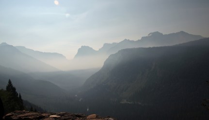 Day two we planned to hit the Hidden Lake trail early, but once again ran down the house batteries overnight, even with the fridge on LP. This time I jumped the generator from the car battery and we were back in business. Since you have limited times you can run the generator, we are working out a charging schedule and turning the fridge off overnight. So we drove up to Logan Pass a little behind schedule in the mid-80’s heat (seriously?) only to find the lot full and cars circling like it was the mall at Christmas. Ok, well we could continue on down the other side a bit, right? Even more of a cliff-hugging trip down, plus a stretch down to one lane due to road repairs and … well, we did a U-turn halfway down to Lake McDonald and the source of the wildfire and trekked back up the mountain and back to camp. Actually, we gassed up and went back to camp to rework the plan.