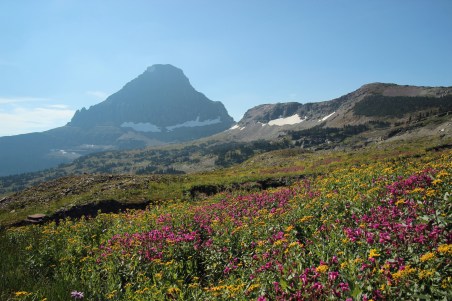I know they call this the Crown of the Continent, but it seems more like the land of the giants to me. All these hulking, huge mountain peaks hiding behind one another and around each bend, some seeming to grow straight out of clear blue lakes. It just seems unreal. (Be sure to read the previous posts from Bighorn and on the way to Glacier… I added some pictures).