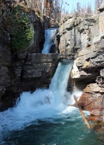 Day 5 was another cold morning as we hustled to run the generator a bit and the plan was to hike a few smaller trails and maybe head to the west entrance of the park. We stopped at St. Mary Falls trailhead for what was variously listed as 0.8 to 0.9 and 1.5 miles long. It did seem far to the falls, which were a gorgeous rush of clear water cascading over the rocks. Back to the start of the trail and our fitbits said over 3 miles, so who knows? Speaking of fitbits, mine has said as many as 225 floors in a day!