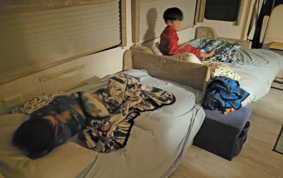 This was the first time we used the dinette for a bed, where you lower the table, add the back cushions and presto you have a bed perfect for a youngster. The sofa was opened up so we had two spots for what we hoped were two tired boys. Yeah, I think we fell asleep before they did.