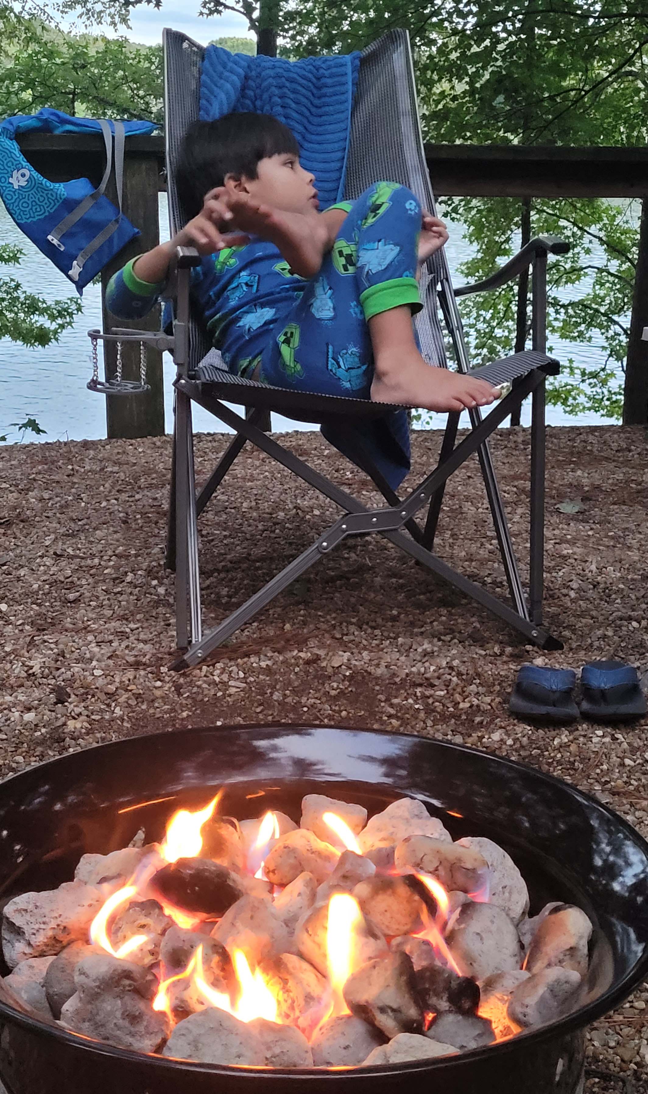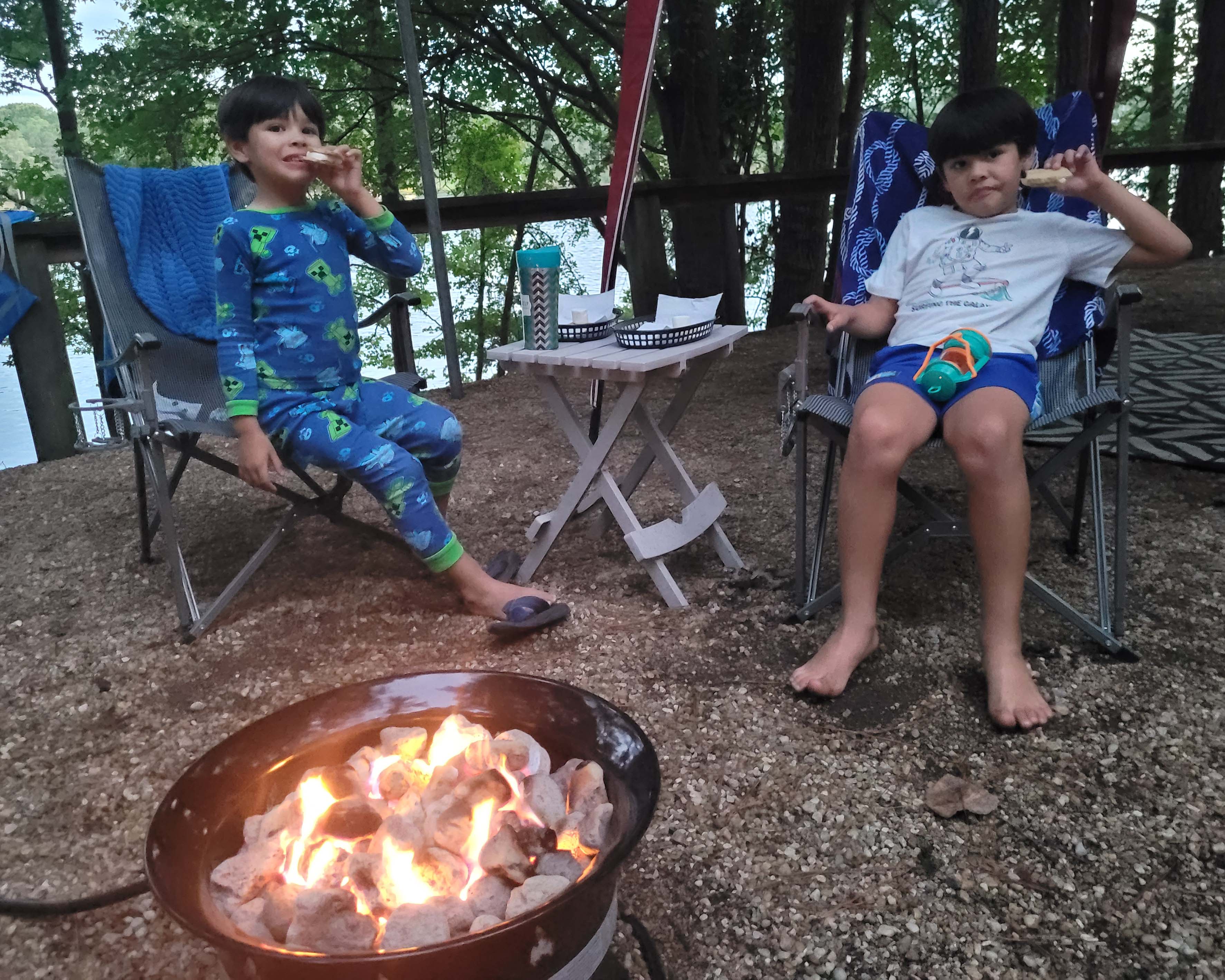Dinner was hot dogs, potato puffs and cherries, followed by S’mores and ghost stories around the campfire. Ok, this one was a bit of a cheat. We had our propane campfire, but forgot the marshmallow forks, so we tried making them in the microwave – which actually was darn good. Nobody had a burned black mallow. And the ghost stories? Very creative.