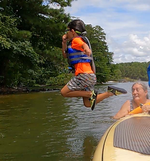 Soon it was time to dry off and run them back home. They might not have been ready to leave, but it had been a fun-filled two days. It was Friday night and a perfect one, as Jackie and I sat and watched the boats and jet skis on the lake, a gentle breeze blowing, adult beverages in hand and wondering “is 9:30 too early to go to bed?”
