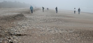 Next day my brother and his friends were set to arrive at the cabin so Jackie and I took a drive out to the beach campground section and a loop around the island. Unfortunately, the weather got worse: colder and wetter. Fog enveloped the area and drizzle turned to rain. We met up with the cabin gang later that night for a campfire during a dry spell (but that came to an abrupt end with more rain).