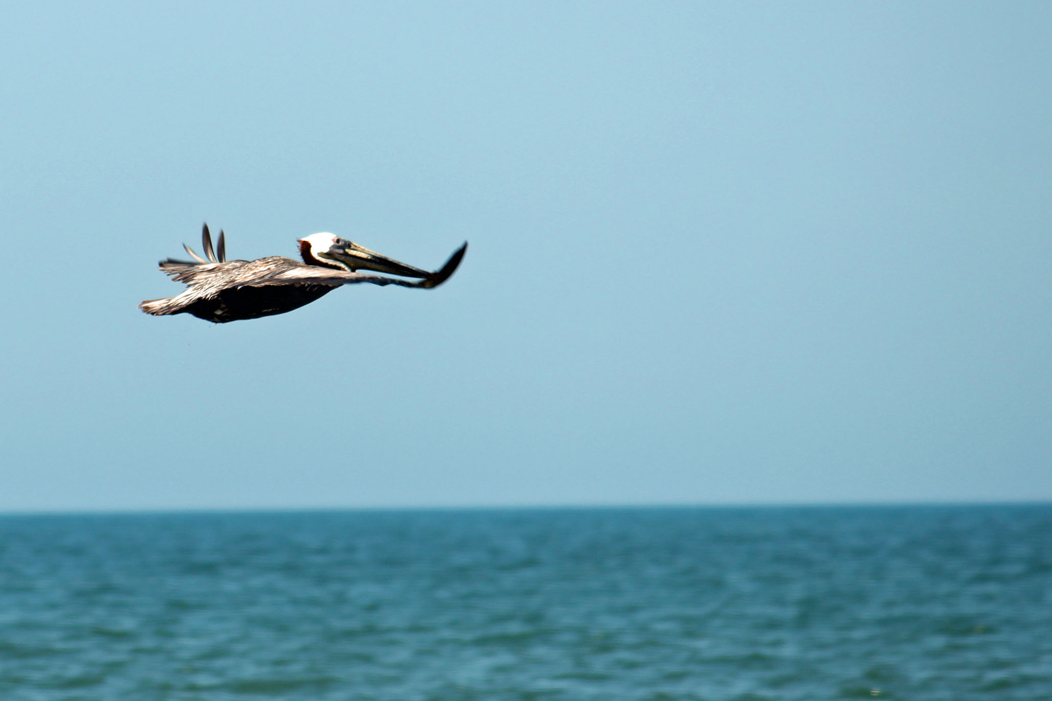 Pelican in flight