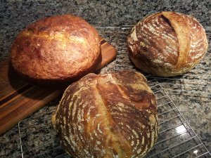How has this new hobby in retirement progressed? Well, I do frequent the baking aisle of the grocery store now, the kitchen has a semi-permanent dusting of flour, my list of essentials grows gadget by baking pan and I now own 5 cast iron dutch ovens. I also frustrate Jackie at times when she needs some counter space while I am mid-loaf in the baking process. But she also has been a big help as “official taster” and with sewing my own design (patent pending?) bread pillow. I gave a few to my baking crew of friends and family.
