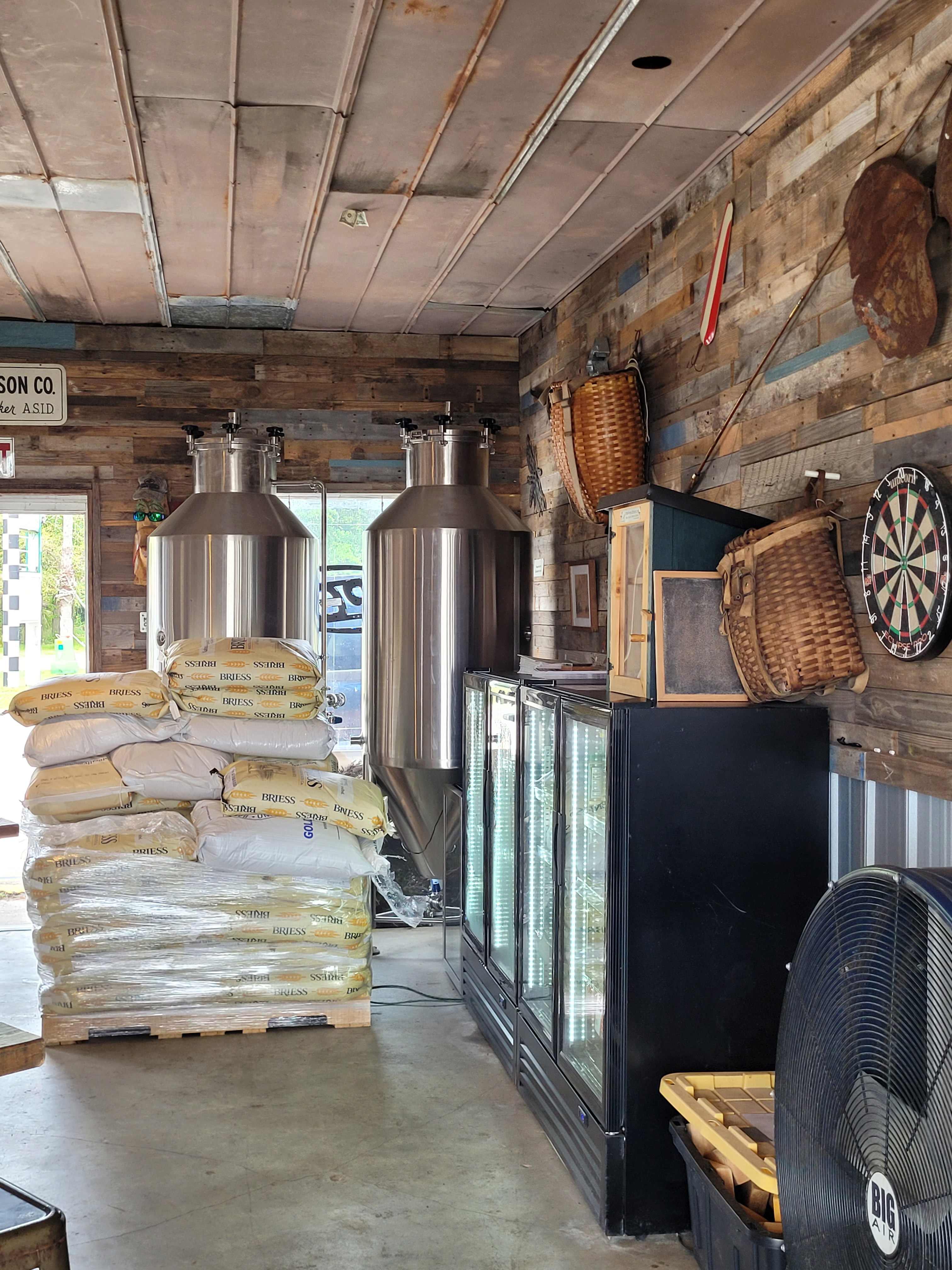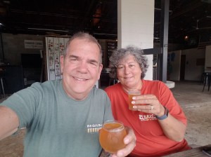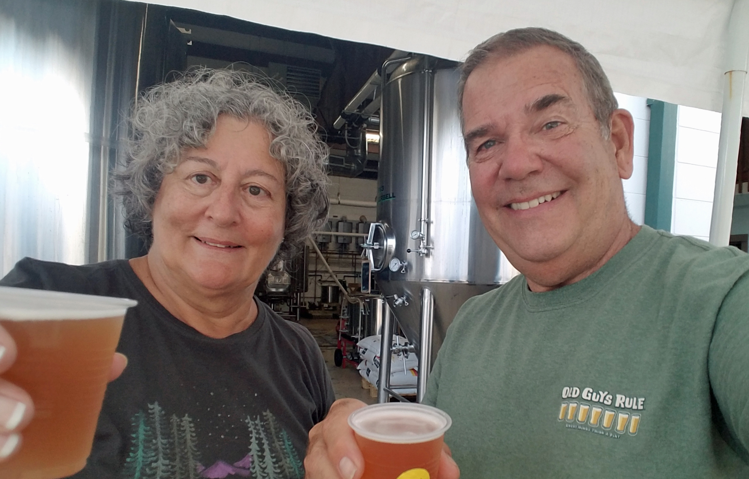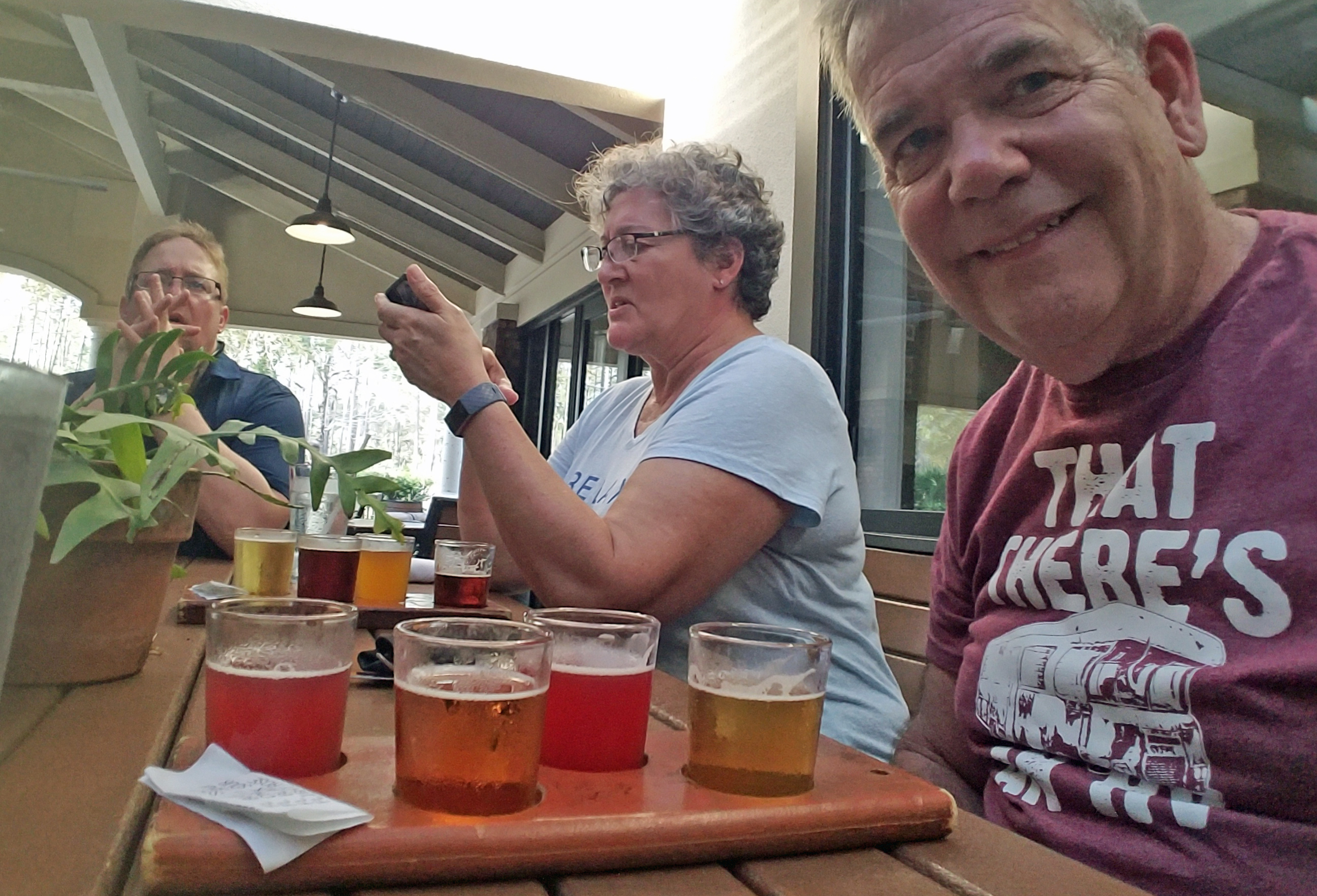 The rest of us, plus two long-time friends of Jim and Dawn, huddled around Alex’s firepit at night, and considered options for the next day from our RV living room. Well, you know full well that we have some sort of “brewery compass” which meant that we found Happy Trails Brewery maybe half an hour away. We had a delicious lunch and some local and regional brews to quench our thirst and soon declared that the day wasn’t a bust after all.