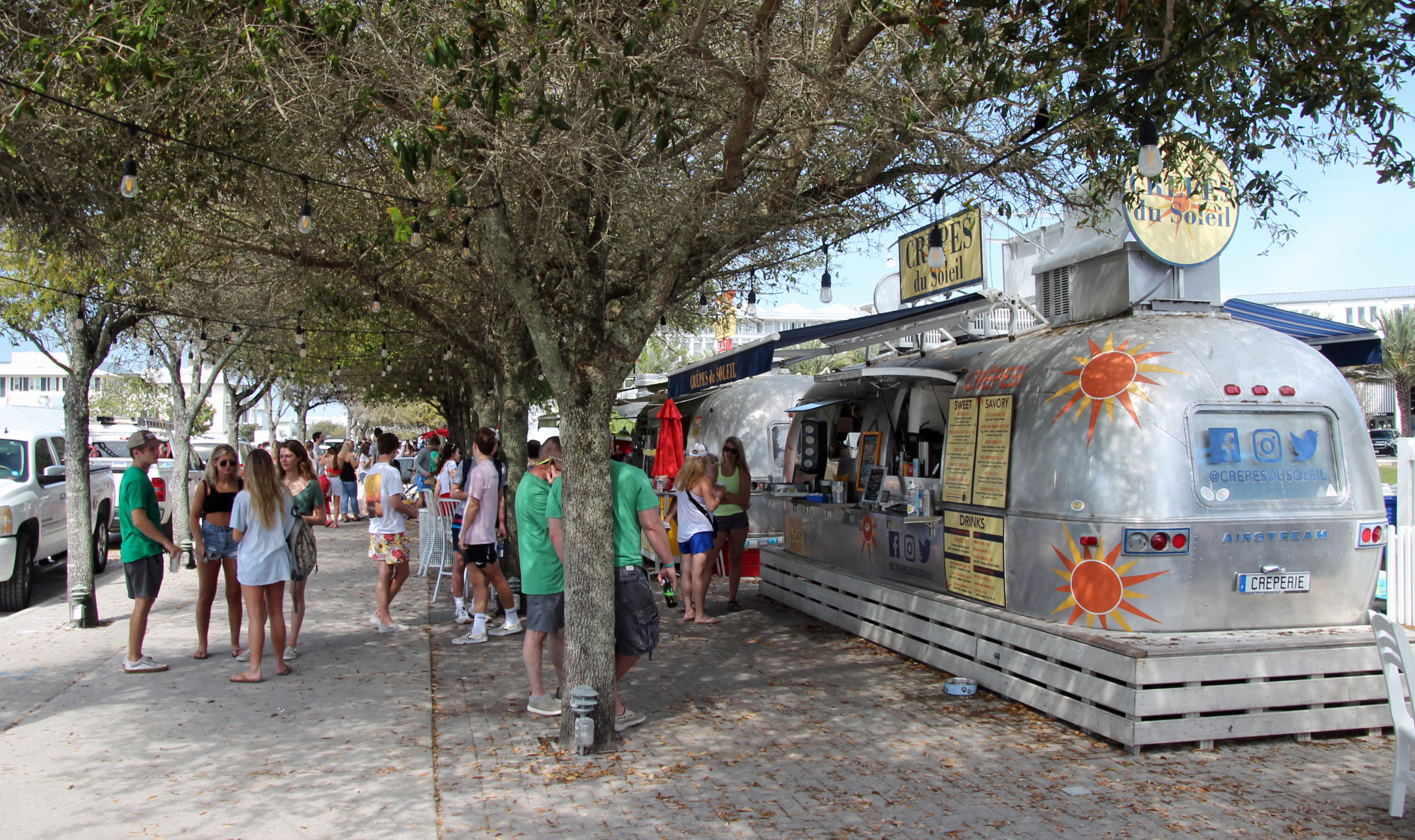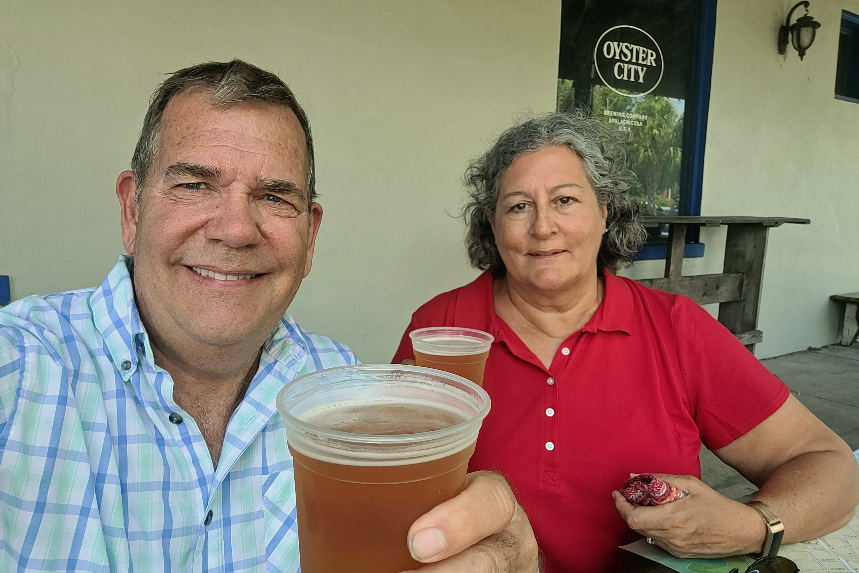 We had a couple of days before Terri and Dan were to arrive, so that meant we could check out the local scene. Grayton Beach is pretty quiet compared to Destin and Panama City Beach, but the Seaside and Watercolor neighborhoods are a destination all their own. And it was indeed just as busy with cars, bikes and people as ever. But we only drove through, on our way to check out two breweries: Grayton Brewing and Idyll Hounds. Made it to Idyll for a couple of sips and met a crowd of 5 other local teachers (it was the end of the school day) and we chatted for a bit. Also met another couple who were great fun – we shared stories of our camping adventures, our beer adventures and some “curly girl” hair advice.