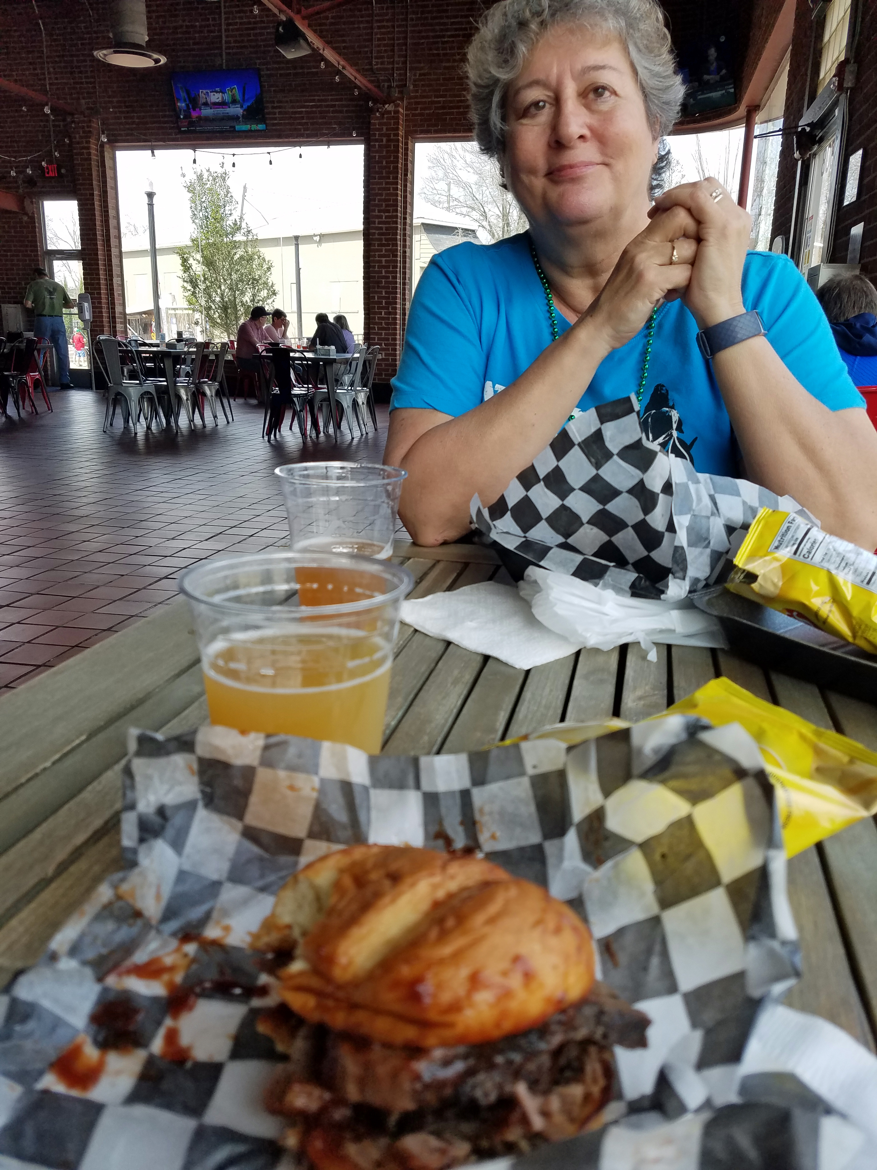 We were in no hurry and it was lunchtime, so the brewmobile pulled into a really nice spot at Wild Leap Brewing. We had a beer each and some delicious smoked brisket from a food truck. Kodi had a wonderful time meeting the patrons, being fed dog biscuits and generally just enjoying not being in the motorhome.