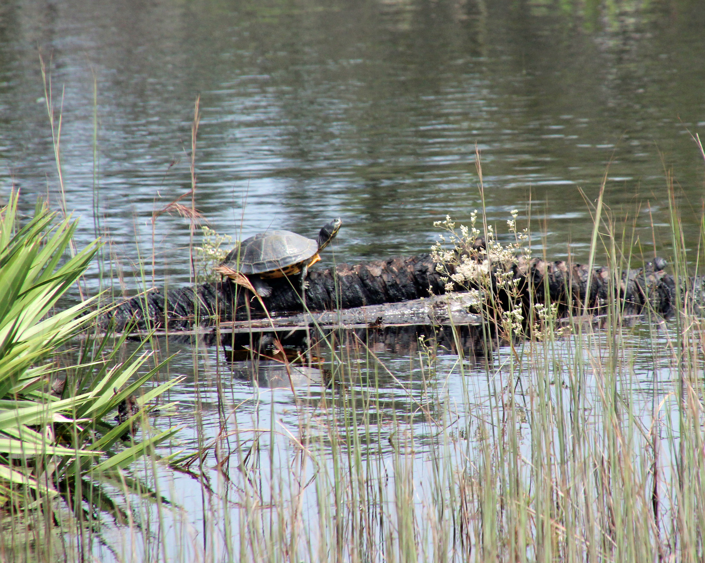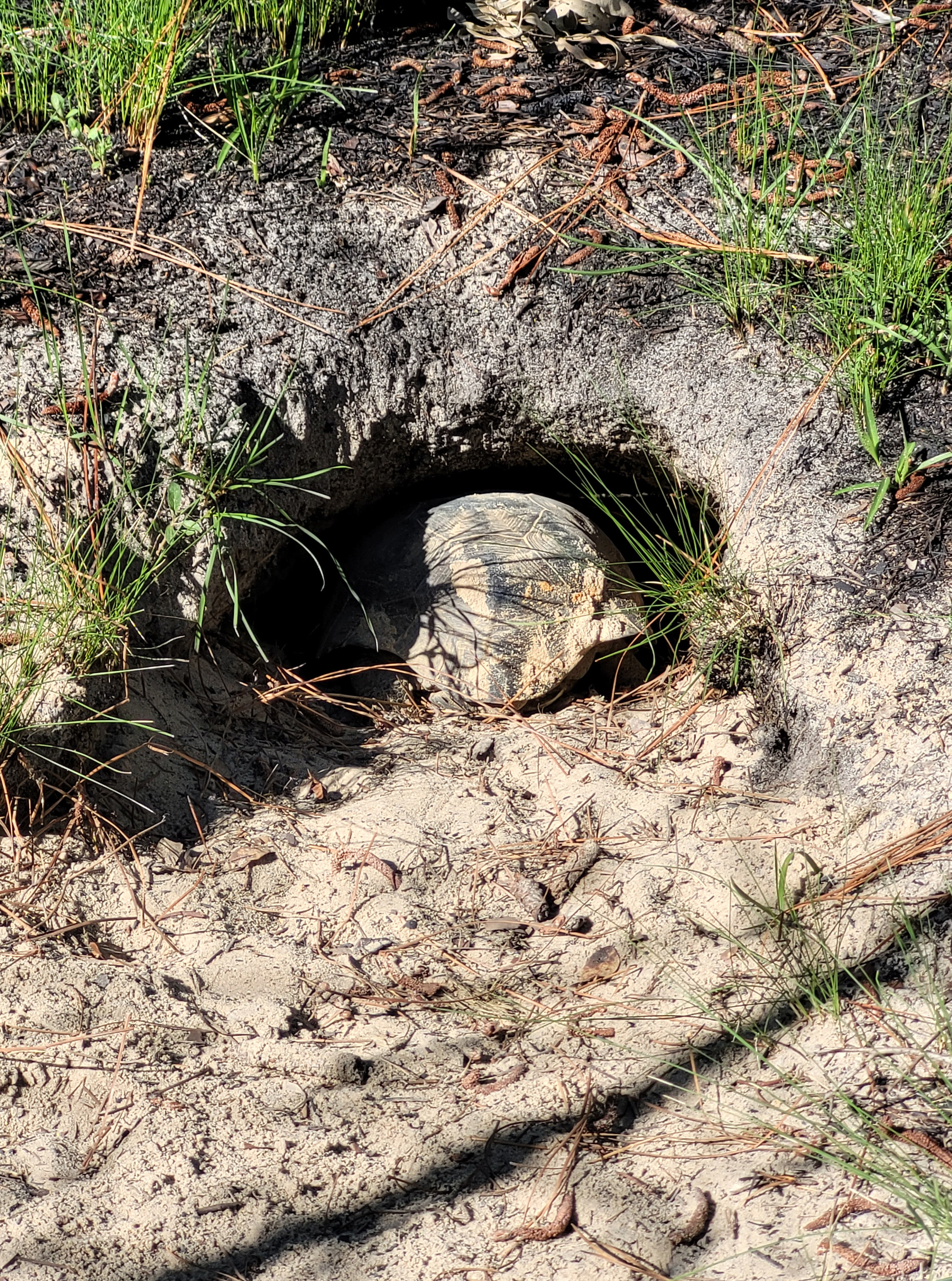 Kodi, Jackie and I walked a short trail called the “Gopher Tortoise Loop” before dinner, which was a nice sandy trail and darned if we didn’t spot several of their burrows, one with the tortoise in the doorway. It wasn’t our first time seeing them, but kinda cool anyway. Jackie was disappointed not to see any indigo snakes.