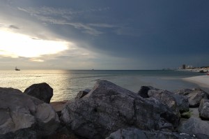 Once we arrived and set camp we headed to the beach. A lot less sand was there and a lot more of the rock jet exposed. But the water was still as clear as before and the sand just as white. An evening storm was moving along inland, but so far looking good at the beach.