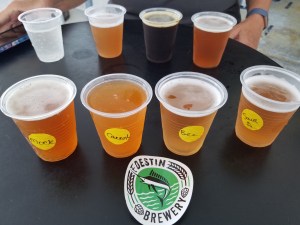A visit to Destin Brewery to have a flight of beer each (and get that fridge sticker!) Good brews!