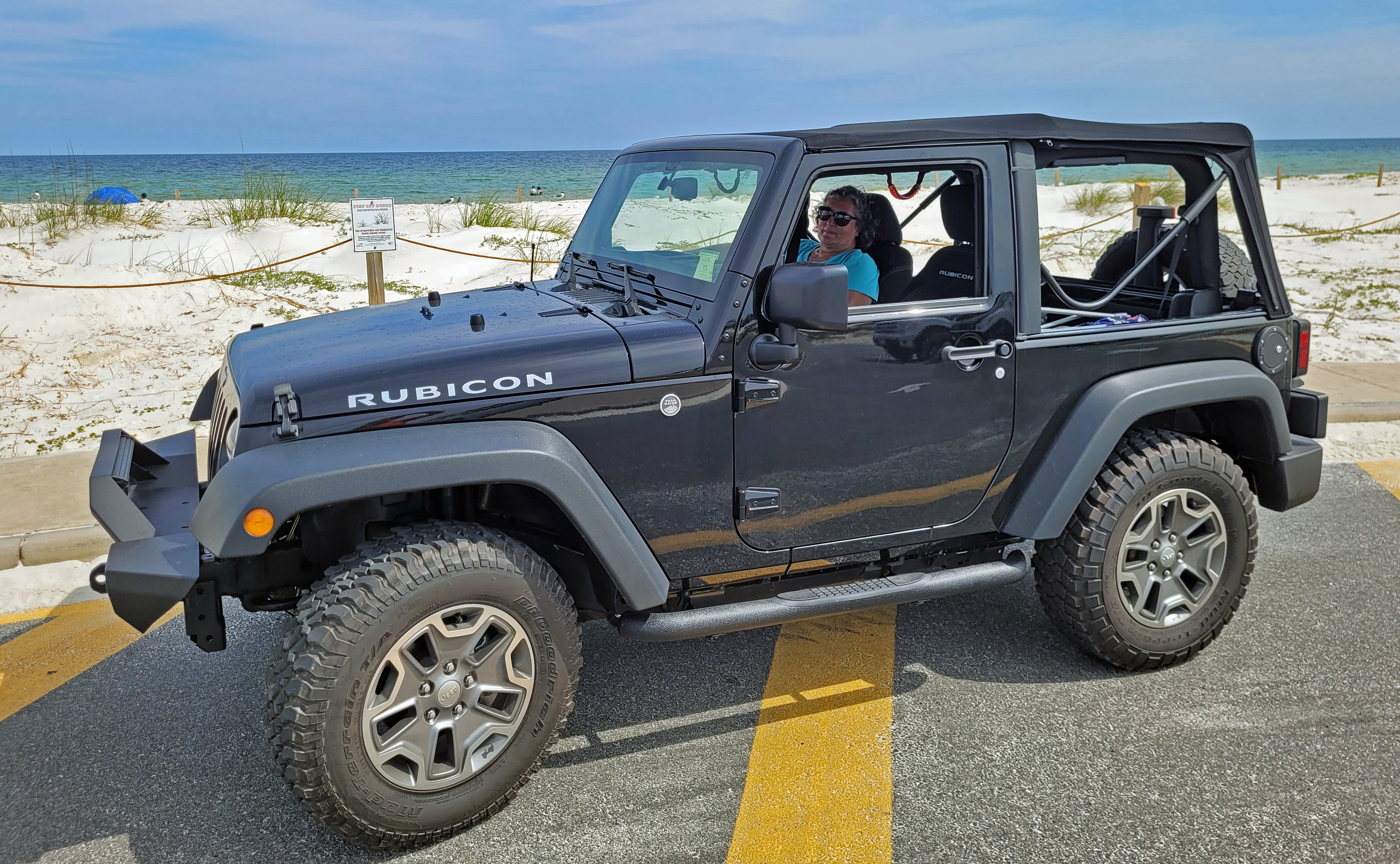Yep, that’s right. We are spending two weeks in Florida, camping at a favorite spot: St. Andrews State Park in Panama City Beach. And we have the top down on the jeep to enjoy the sun and fresh salt air. That’s topless in Jeep-speak. What were you thinking?