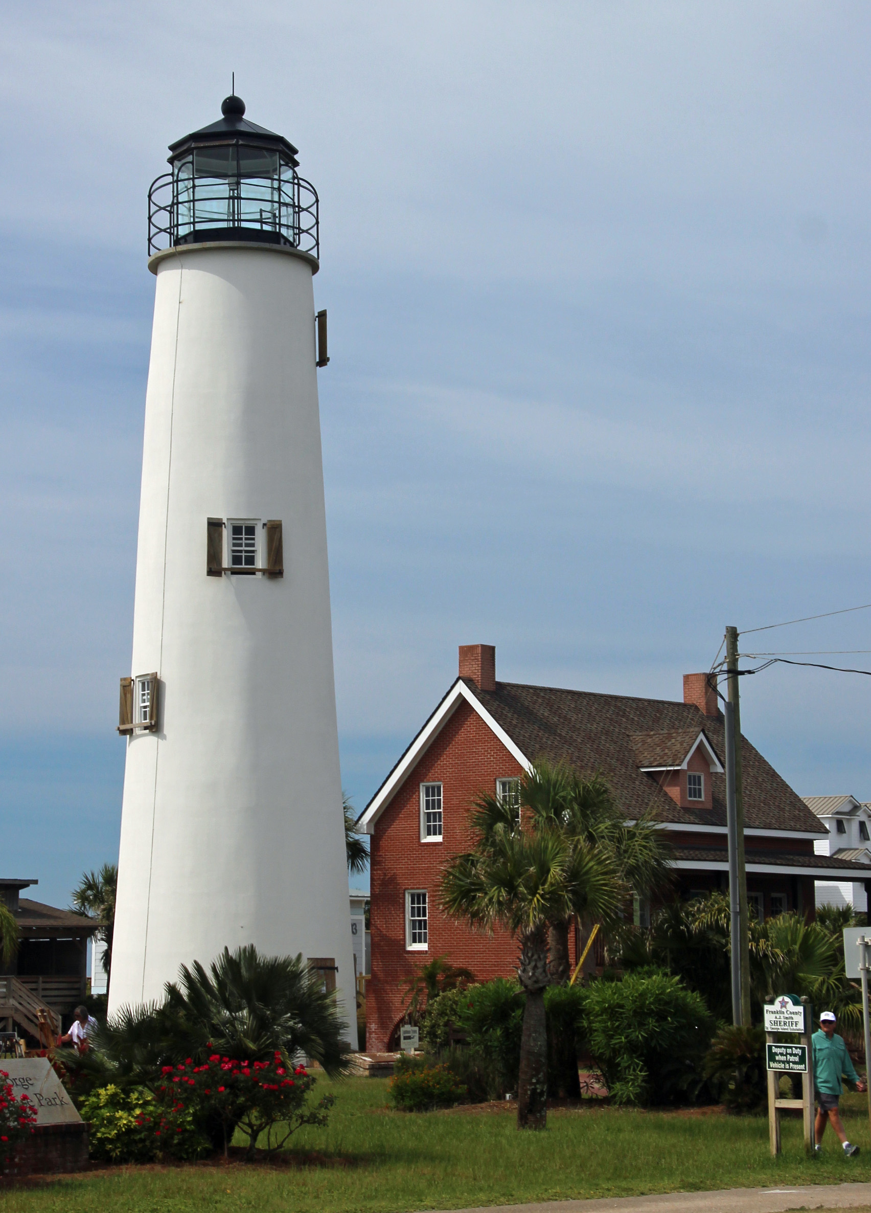 The rest of the trip to Eastpoint, Florida along the Apalachicola Bay was smooth and soon we were driving behind the dunes on St. George Island State Park. A beautiful island with a very small town (one t-shirt shop, two small grocery stores) and a fair amount of vacation homes up on pilings. Much of the area was hit hard by recent hurricanes. The campground was an easy setup, only 60 sites with water and electric, and soon we had the Jeep disconnected and the motorhome set and level.