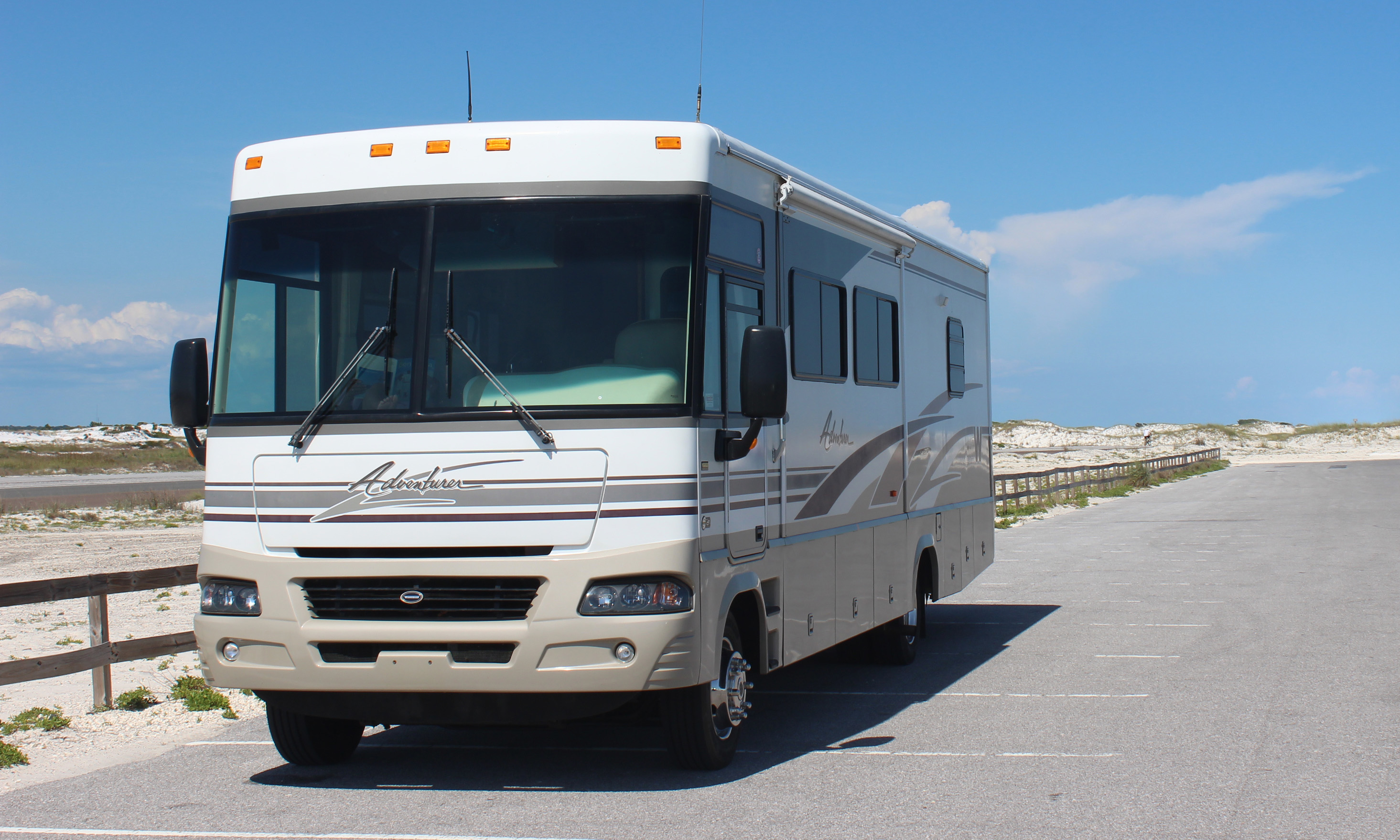 Our first camping adventure is to Big Lagoon State Park in Florida (west of Pensacola Beach next to Perdido Key) for an early adventure with family (Colin and Rachel’s school is on spring break). We uncovered the motorhome, rinsed and sanitized the water system (and yes, the hot water does flow!), checked to see that the fridge works, put air in all the tires and packed up for about a week along the Gulf coast. Now we consider ourselves pretty sharp, but I don’t know what we were thinking when we packed our gear for this trip. We had bathing suits, flip flops, snorkel gear, beach chairs and umbrellas, paddleboards and a kayak all loaded – but as we rolled out on Saturday the temperature was 40 degrees! Needs to warm up a bit.