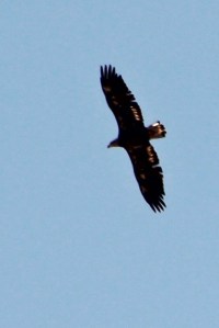 Further along the hike we reached some shrubs where blue footed booby chicks were sitting in nests – all white and fluffy. There was also a new bird for us, the red footed booby, both adults and juveniles. They were much more gray colored, but the feet were definitely red. Along the cliffs we saw the third booby, the Nazca booby. These were white with black wing patches and a yellow bill. Several flocks were flying along the cliffs and you could catch a few nesting out on the rocks. Very scenic area, with red and orange plants scattered on the rocks (probably a variety of sedum). We turned back and found the barn owl still sitting on the ledge, ignoring us.