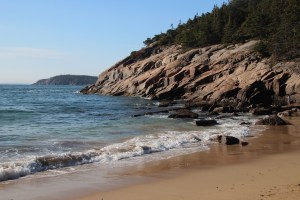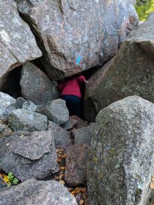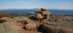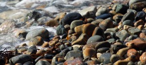 Back at the beach landing we changed into our snorkel gear to check out the sea life. Turns out it was pretty stirred up and hard to see clearly, so we opted to slip off our fins and get out. As we were doing so, someone pointed out “octopus in the water”. Sure enough, there in the wave wash was a dark grey/purple octopus, maybe 12” across the spread tentacles. We watched a bit before it disappeared deeper into the water. How very exciting!