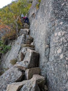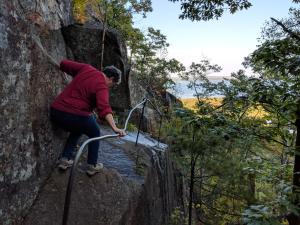 Jackie was still not feeling too good, but I told her it was not a real important excursion day and to stay aboard and rest. We had some chill time again onboard as the ship repositioned off Punta Pitt and we waited for our scheduled time to visit the island (visitation is strictly controlled). At 4:00 I boarded the tender for a wet landing, then changed into dry socks and shoes for the long hike up and around the island. This was a hike up a dry, tight creek bed, much like a small slot canyon, and it was a nice challenge. You pretty much had to watch your footing the whole time, but as I stopped to get a picture of the blueish lichen on the rocks I noticed something odd on the rock ledge. Oh, wow it was a small owl. I pointed it out to our naturalist, who got very excited to see the Galapagos barn owl. It was just roosting on the rock, not paying a bit of attention to all of us who were snapping lots of pictures. Nice catch.