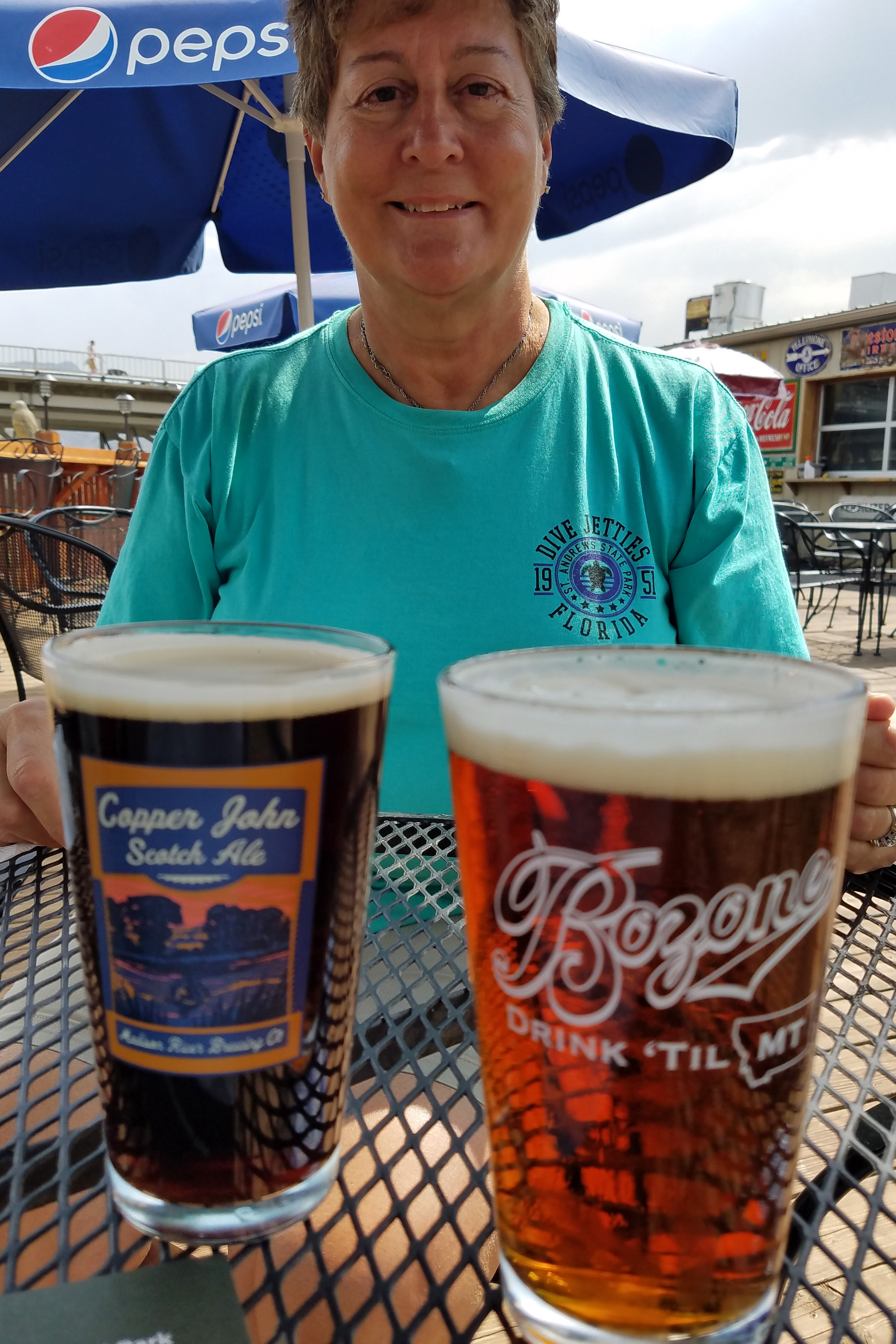 Still wet and humid the next day, we made our final drive along I-10 into the Florida panhandle and Grayton Beach State Park. Quick as we could, we disconnected the car, made camp and headed to the beach for a swim. Gorgeous water, beautiful beach — we cooled off and shed the dusty west. Dan and Terri from home were vacationing here this week and the plan was to meet up and revisit some of our favorite breweries here. First night we had a delicious meal at Café 30A, told tales of our bold adventure and watched the sun set over the gulf.