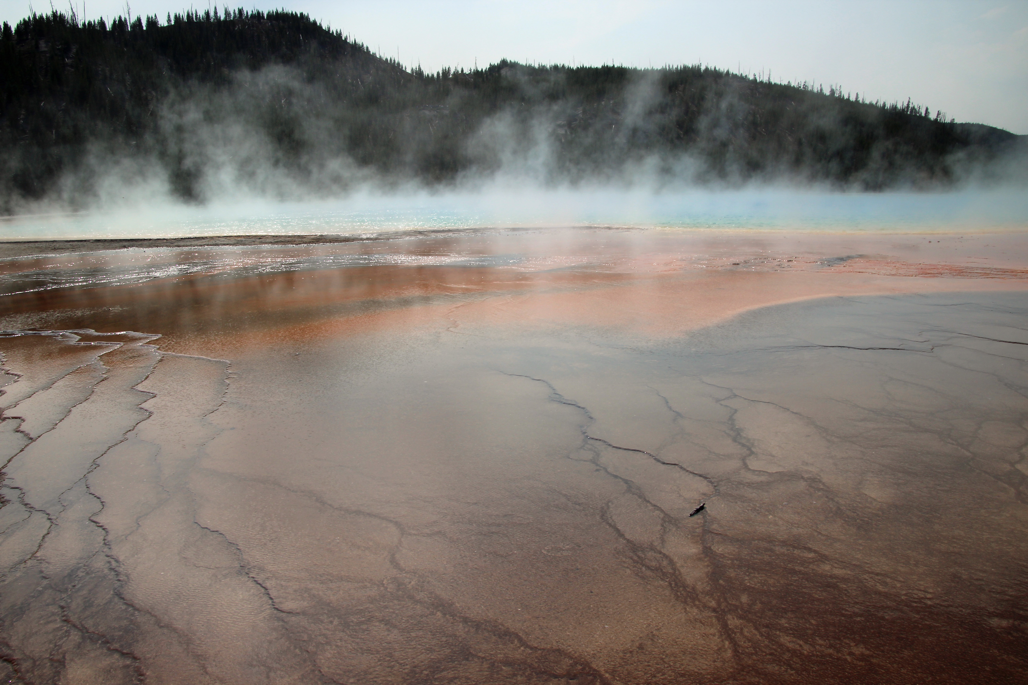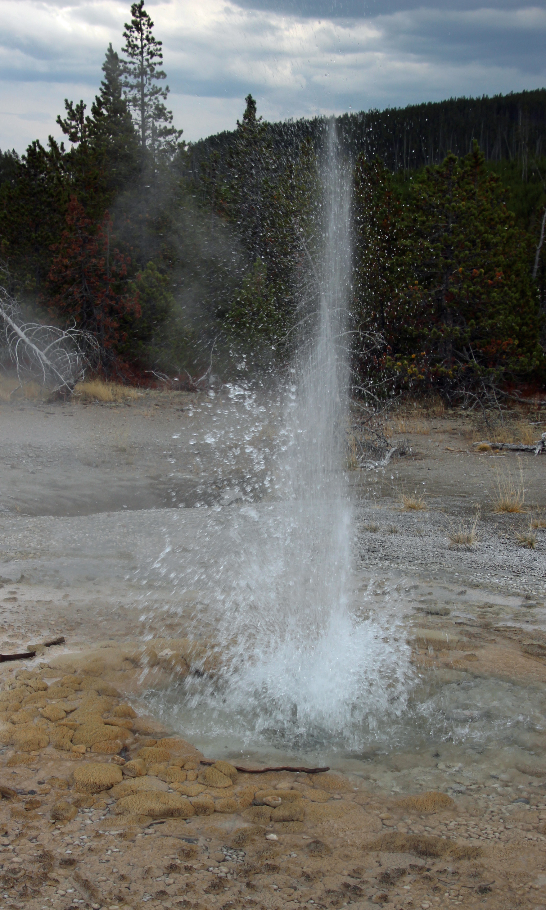So we walked around town, noticing that the downtown businesses were trying for a turnaround, several of them pretty decent shops and such. We stopped to splash our hands in one of the open spring pools, only to learn that “ouch” that water is hot! Unlike Yellowstone’s steam vents, geysers and hot springs, nearly all of the hot springs in the park and town were capped off years ago by the government. But a few are free spigots for you to fill your jug – just be aware it is HOT spring water.