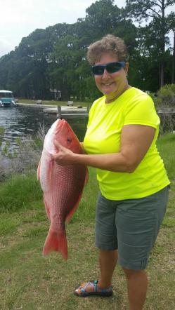 I should mention that there was much boating activity that weekend, mostly due to the 3 day season for red snapper in Federal waters. Best place to see them was at the fish cleaning station, where Jackie pretended that she caught a big one. I recall those fish-cleaning days on the Jersey shore when we came back in with barrels of bluefish and I didn’t envy the guys who were filleting them at the dock. But snapper is good eats! Made me also think of the lionfish cleaning in the Keys from last fall (see the post: Island Hopping).