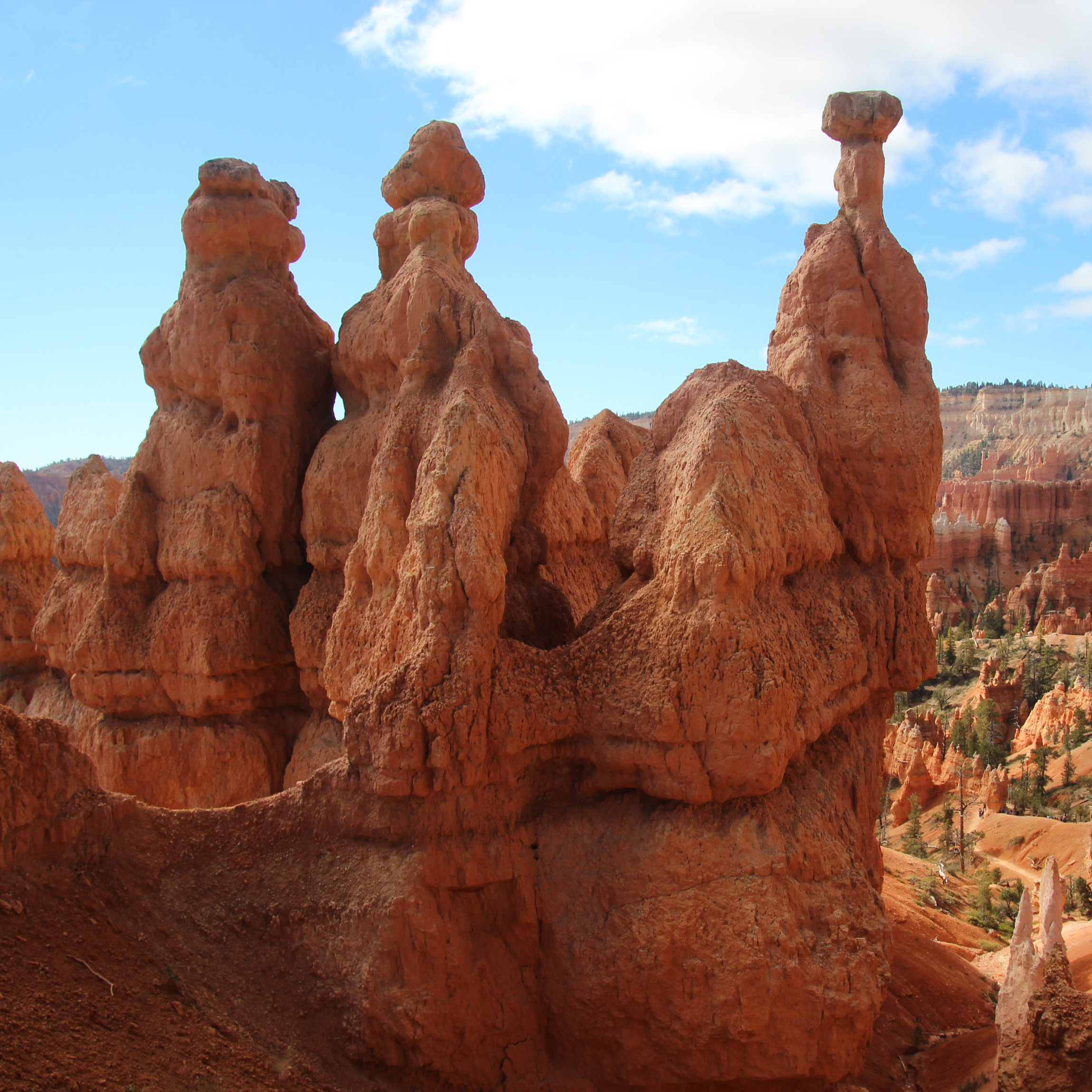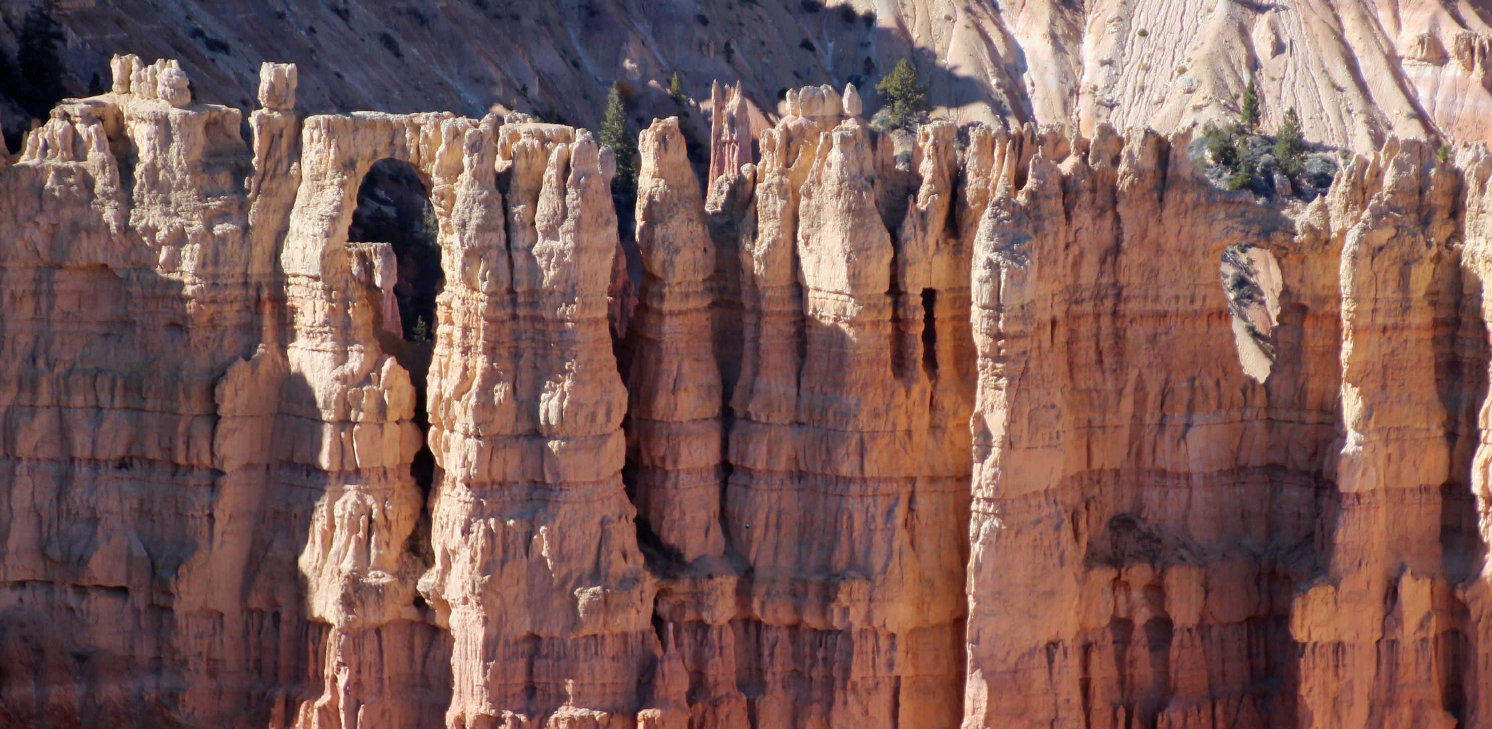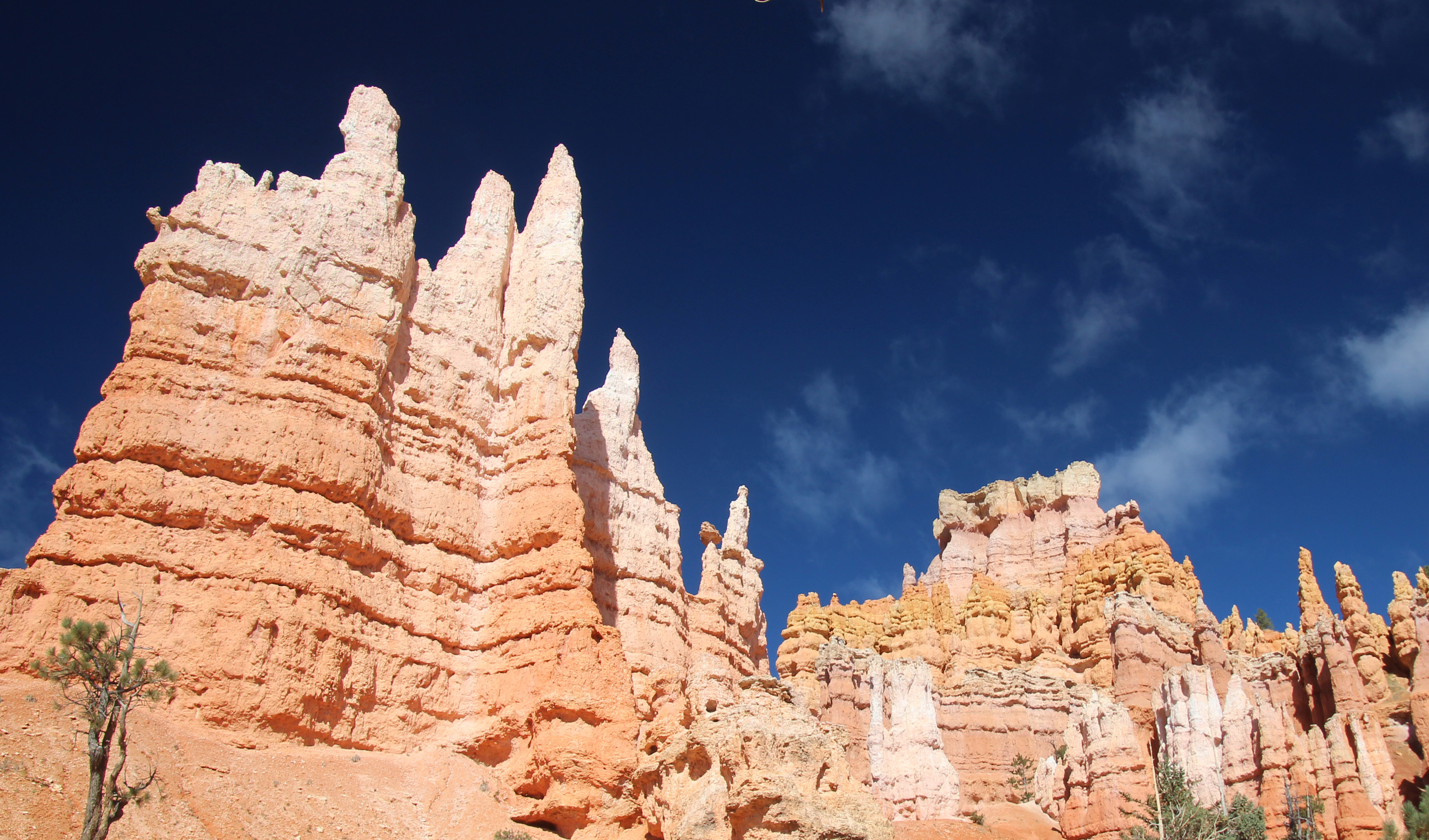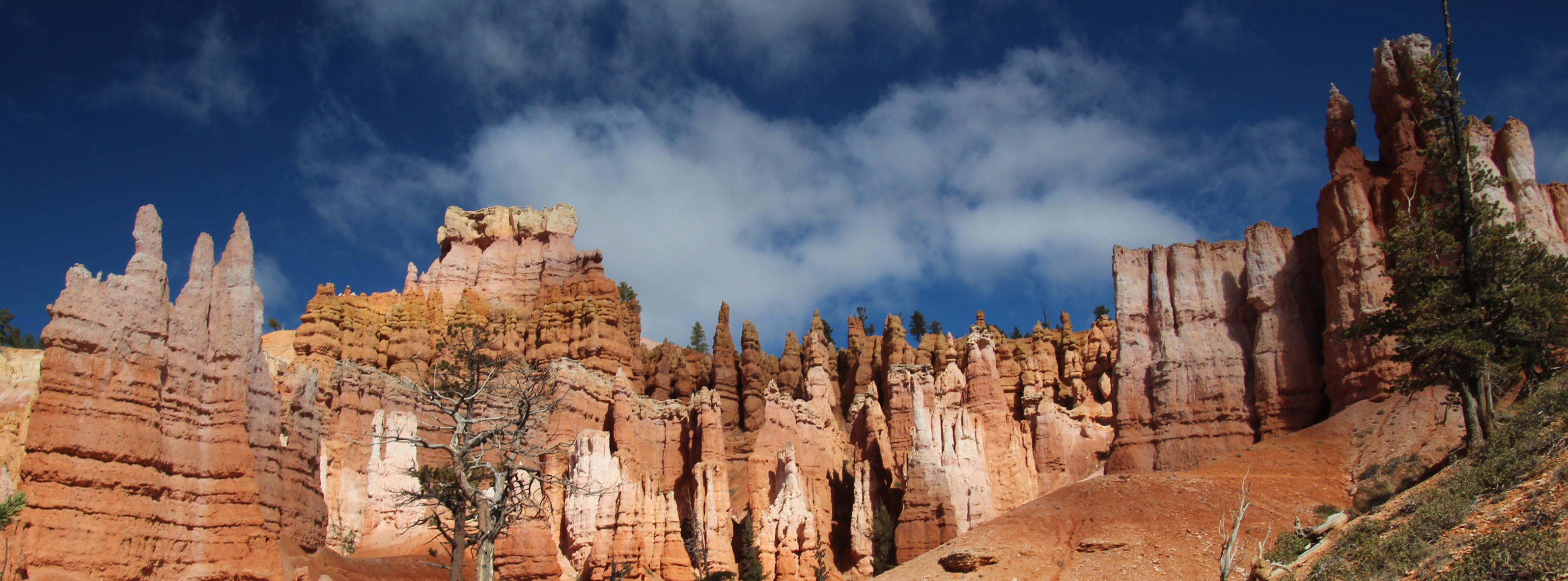 An otherworldly landscape that we experienced on a beautiful, crisp fall day. The day was perfect and the scenery was breathtaking – literally, since we were huffing and puffing our way along the 3 mile hike that dropped down about 600 feet at the 8,000 ft. elevation — and then back up again along some challenging switchbacks. You don’t want to miss the Wall Street section of the Queen’s Garden/Navajo Loop trail. The next day we left the area in a snowstorm that dropped about 6 inches of snow, so our day turned out to be the best chance for hiking.