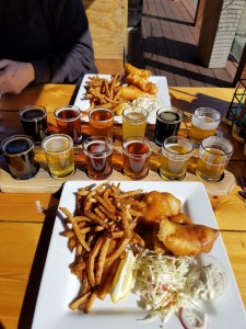 This is a pretty new operation, the campground just opened this year. But is has generous room for rigs, full hookups and dump station, and lots of tent sites for AT hikers and others. The grounds have a bandshell, outdoor bar, lots of outdoor seating, a distillery, breakfast spot and of course their tap room and brewpub. So we walked around with Kodi, who met lots of folks, had ourselves a beer and relaxed a bit in the sunshine. We both liked Gold Leaf Lager, I enjoyed the Cran Gose, a cranberry sour and we made plans to come back for dinner. Dog back in camper, cat fed and we went back for a flight each and a delicious meal. I mean great!