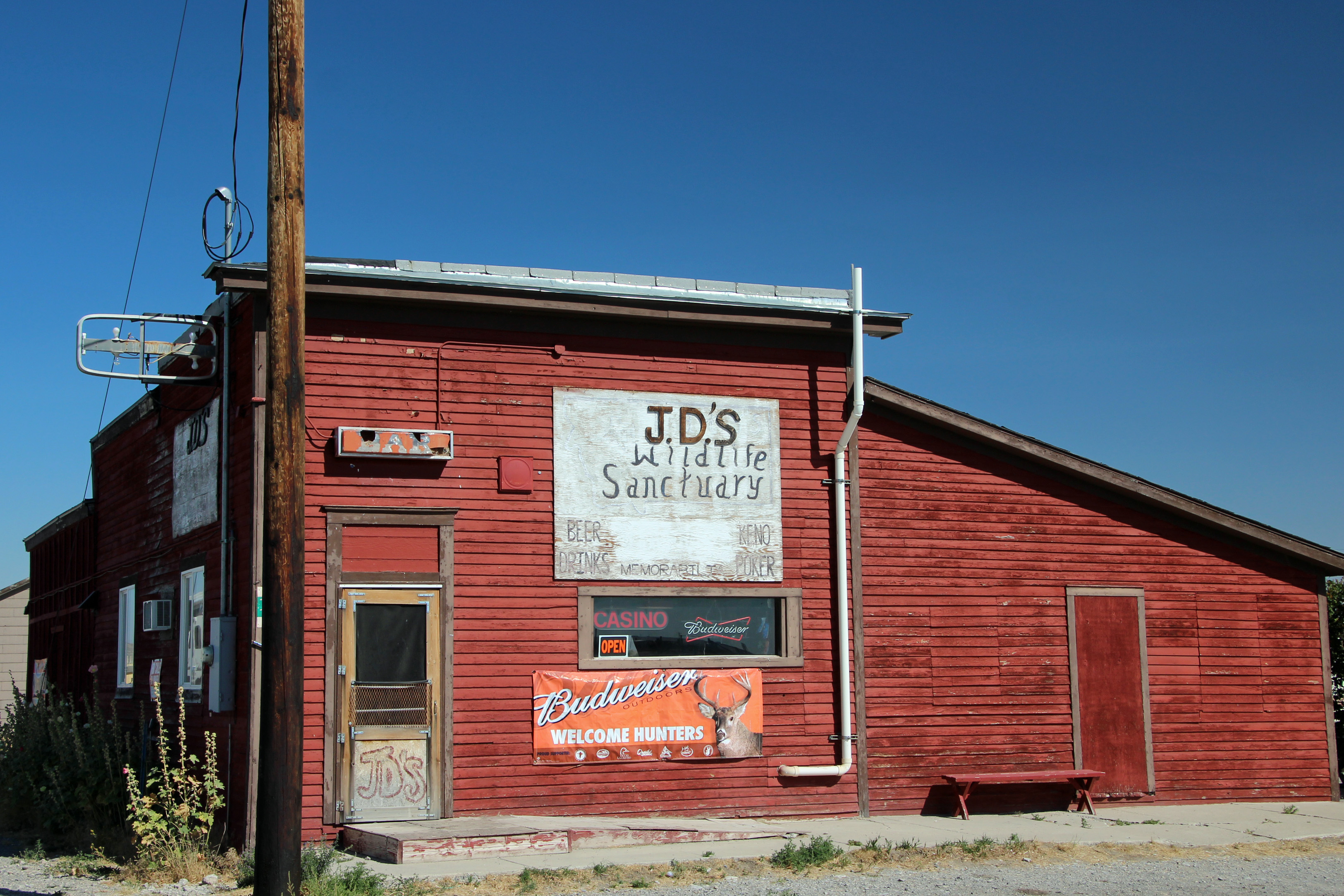 Last stop before camp was in Wall, the home of the famous Wall Drug Store. Probably has twice the roadside signs than Rock City. Kind of a strange collection of western wear, Native American art, souvenirs and whatnot. Of course, this is where you find the jackalope, stuffed and mounted for you to take home. But we only bought some of the recommended maple-glazed donuts that certainly did taste awesome. Across the street was the Badlands Bar, with cold beer on tap calling out to us. I had a local brew with a Brunch Burger. Lesson learned here: a fried egg on a juicy burger with onions, hashbrowns and cheese sounds like a good idea, but it is waaaay too drippy. The beer helped, though. Dinner tonight might just be PB&J.