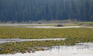 We had time the next morning to drive back into Denali on our own and we were determined to find moose. We all diligently looked among the spruce, in tundra fields and down along the rock-filled dry creeks and several beaver ponds. We did see two beavers swimming around, but no moose. We were driving through areas marked “caution, moose rut in progress” but no luck. Then, as we have learned, we stopped where others stopped and jumped out to see what they found. Yes, there was a moose walking between trees. A bit far off, but a bull with a nice rack. And further along we spotted others, all just a bit farther off than we could easily capture on camera.