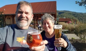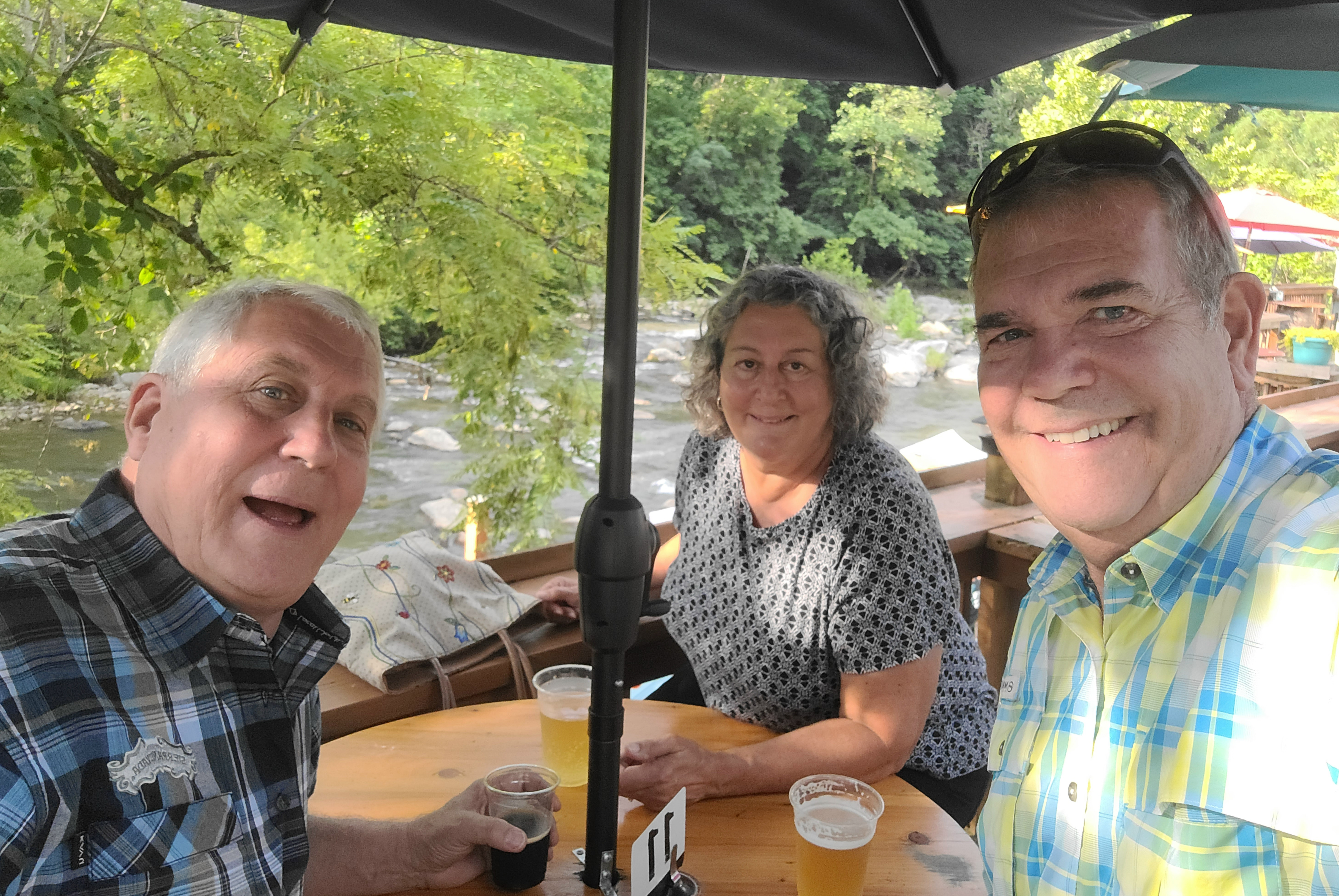 On the way, John got a text from fellow brewcrew member Barb that she was in Lake Lure with a friend and how far was that from his place? Well, of course we told her to join us at the brewery and soon we were all sitting alongside the Broad River enjoying the cool evening with beer in hand. Jackie, John and I shared plates of pulled pork nachos as we looked up at Chimney Rock. It was maybe 7 years ago that we paddleboarded on Lake Lure and climbed to Chimney Rock. This was a nice night with good friends.