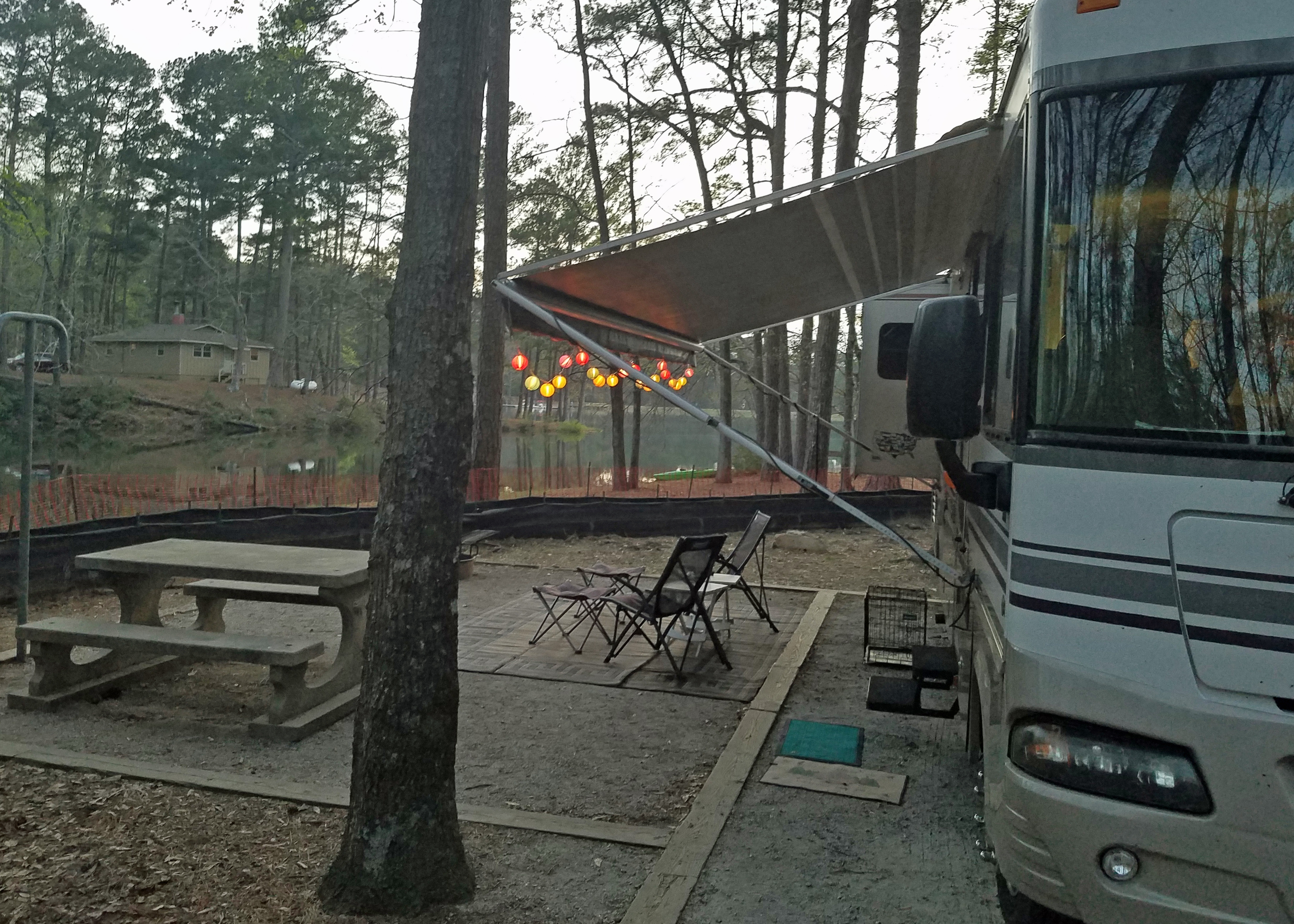 We broke camp on another cool, clear morning as we reflected on some nice meals in camp, warm campfires, a serpentine road trip up the mountain to Roaring Gap in the Jeep and just a nice visit to the mountains. Our next stop was back at John’s cabin three hours away. We slipped the motorhome under the garage roof and Craig expertly backed their trailer down the driveway, leveled up and hooked up (thanks for the hookups, John).