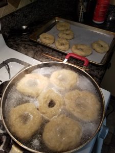 On the list this time is nailing in the stair risers, installing interior doors, adding door trim, then moving the chop and table saws, tools, lumber and such out of the living room and onto the back porch. That let us clear out the piles of sawdust, wipe down the windows and walls and install screens. Showers work, the refrigerator is running, AC was cooling and we fired up the Wolf stove with fresh-baked hamburger and hoagie rolls.