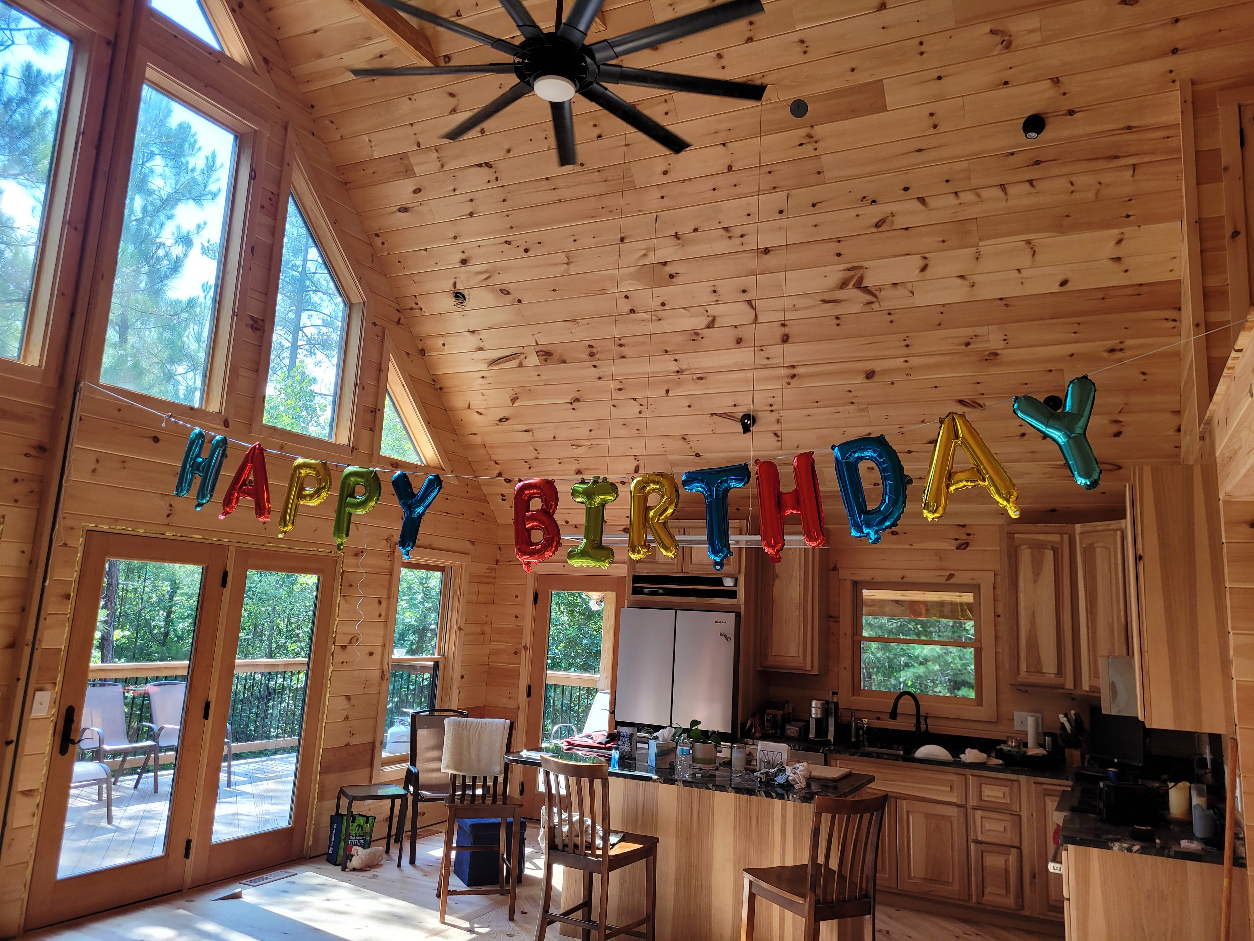 We put down more of his flooring in the living room (not quite all of it). Jackie ran the dishwasher, washer and dryer for the first time (and got us caught up on clean laundry) and we surprised her with a small birthday celebration.