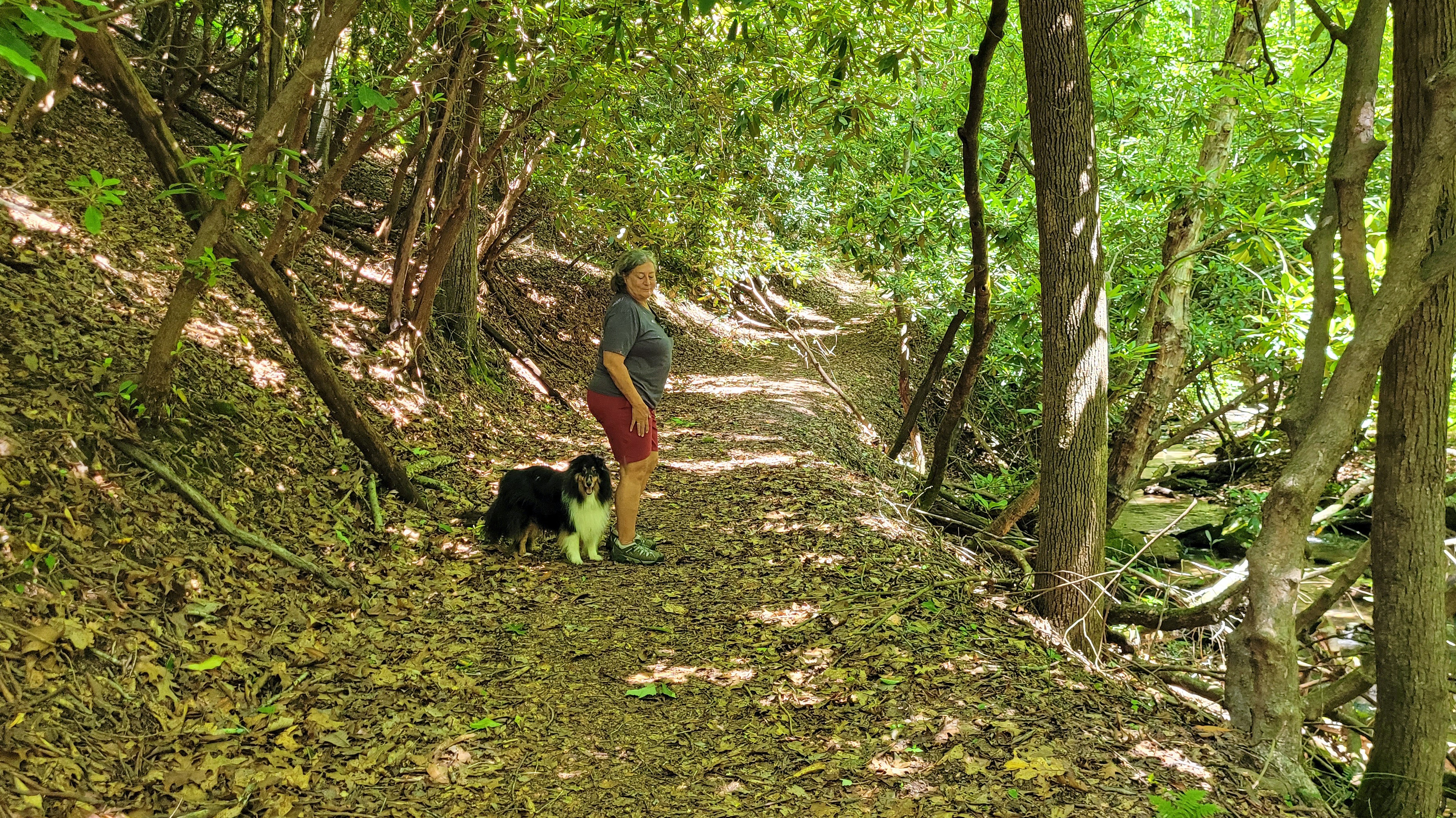 Driving from Elkin toward the park was through some very beautiful pastures and tobacco fields, and the park sat amid the rolling hills below the much higher peaks of the Blue Ridge Mountains. At camp it was an easy task to disconnect the jeep and back into the site. Flat towing the Jeep is much easier than the tow dolly and the Rav4, with just a few connections using the Roadmaster tow bar and Invisibrake. This should be a big help for our big trip out West in the fall.