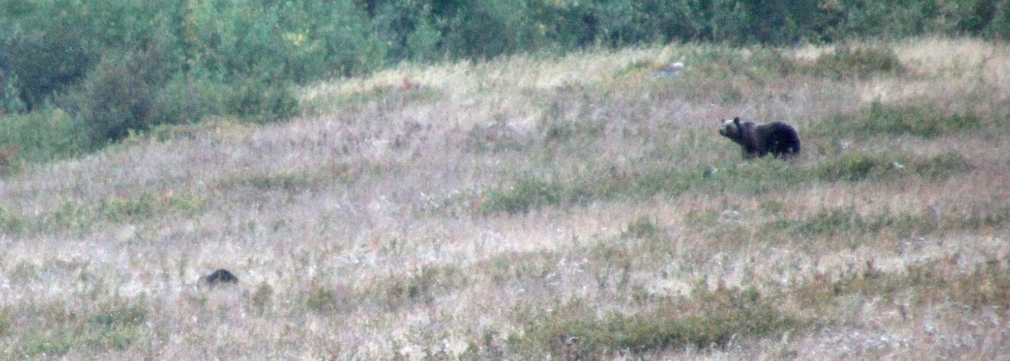 You may have read that a portion of the roadway into Denali was wiped away in a landslide of the soil and permafrost – actually, the road crossed a moving rock glacier. Replacing that section, which is less than halfway into the park, will be a couple of years to complete. That meant our trip was only about 6 hours, out and back. But that was plenty of time to see some caribou, brown bear, Dall sheep, golden eagles and ground squirrels. Moose not so much. Mt. Denali not so much either – it was hidden in clouds. Still, it was scenery that you won’t find anywhere else, as the glacier-scooped tundra valleys and sharp mountain peaks are spectacular. Fall was just starting to turn the leaves and grasses golden and red, a nice contrast with the green spruce. In a case of the movie Endless Summer’s line “you should have seen the waves yesterday,” Norm and Carol confessed that on their first day in the park (while we were on the train) they actually had a moose cross the road in front of them. Norm supplied the photo as proof. Darn!