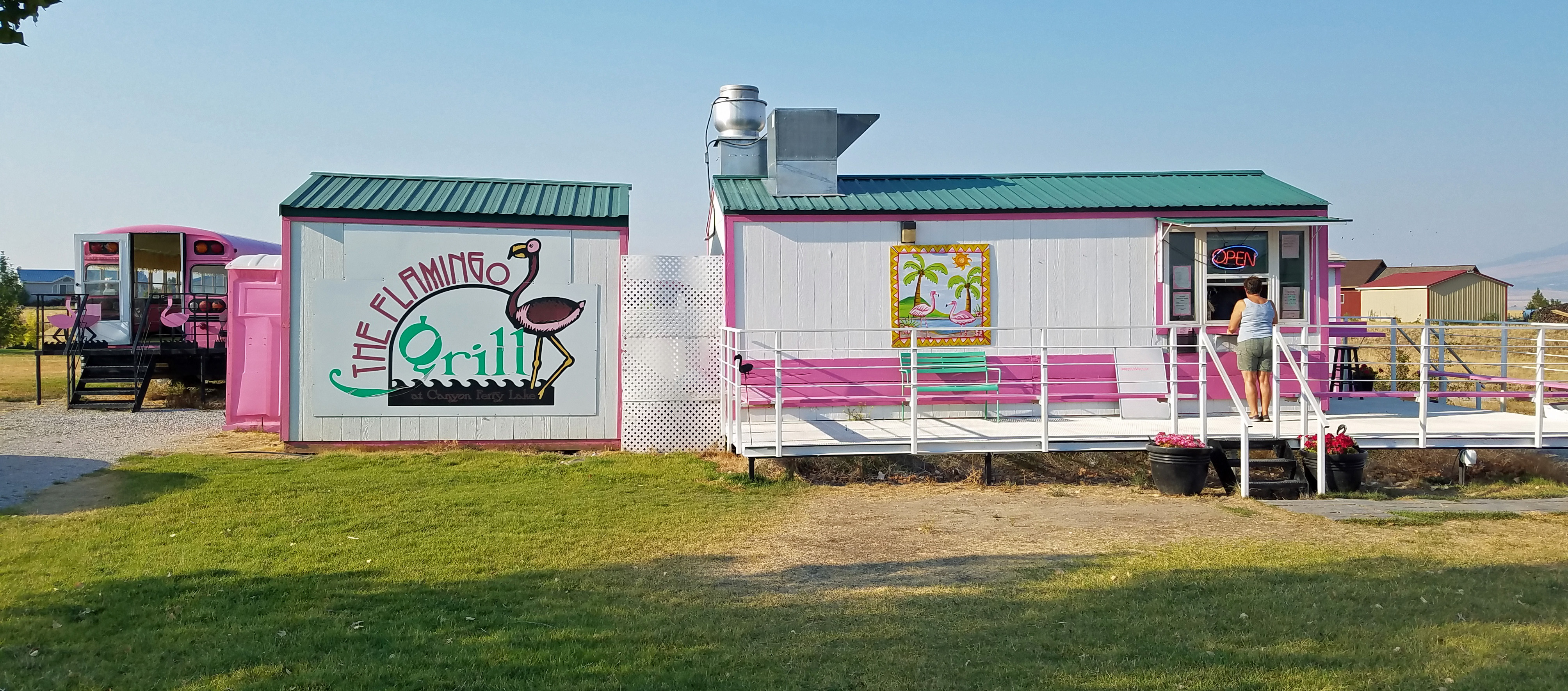 The rain tapered off and the river didn’t rise any further, so we were in for a quiet night. We thought. Round about 4:30 in the morning we heard a loud ‘boom,’ then silence. Nothing else, no lightning, no thunder, no rescue sirens. Hmm. We all heard it, but nothing more. In the morning Norm picked up Carol in town, barely a half-mile off, and they came back with the answer. The Halibut Taco food truck had exploded. Flattened. No fire, no significant damage to nearby buildings. We had to go drive by and check it out, but felt bad for the owners. Many in town were helping sort through the damage and I suspect that the mayor was helping with some of that halibut! The local news reported it was a propane leak and no one was injured in the blast, but pieces did fly across the street.