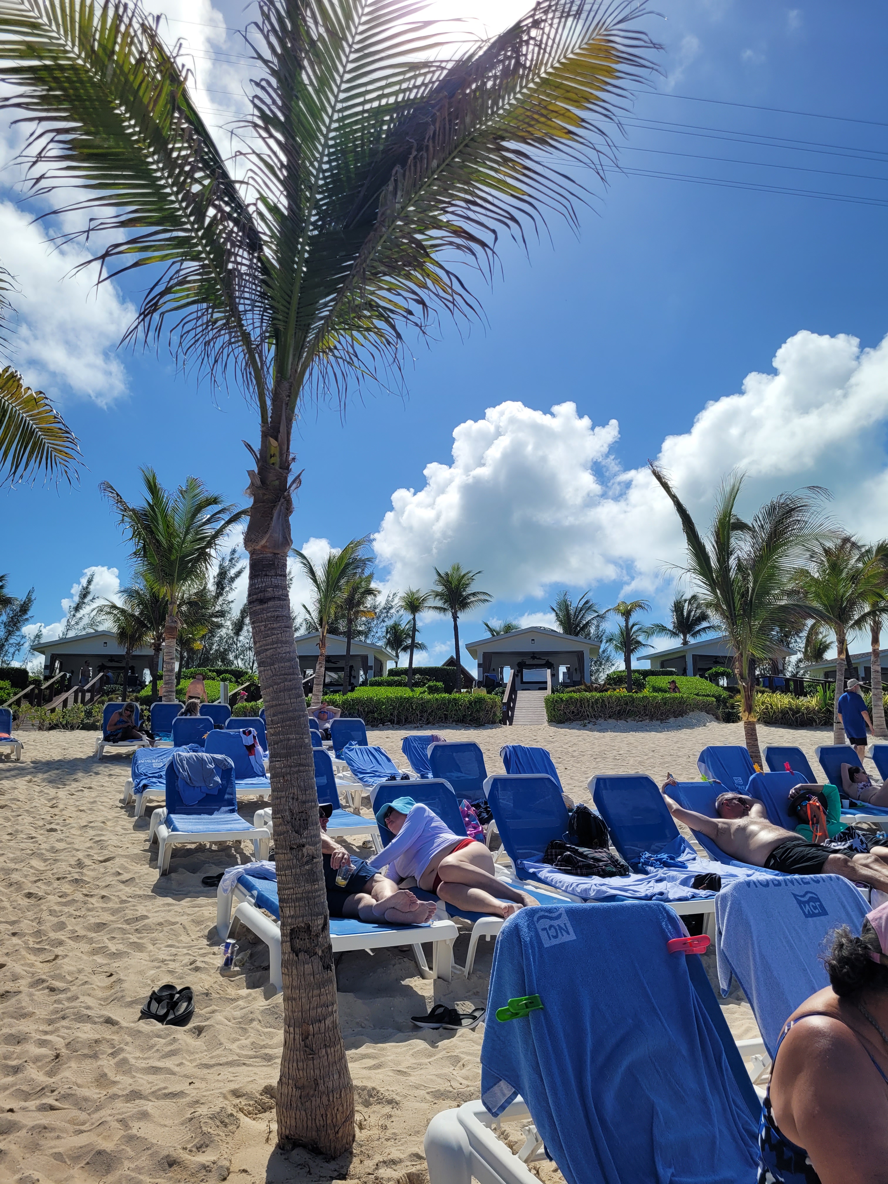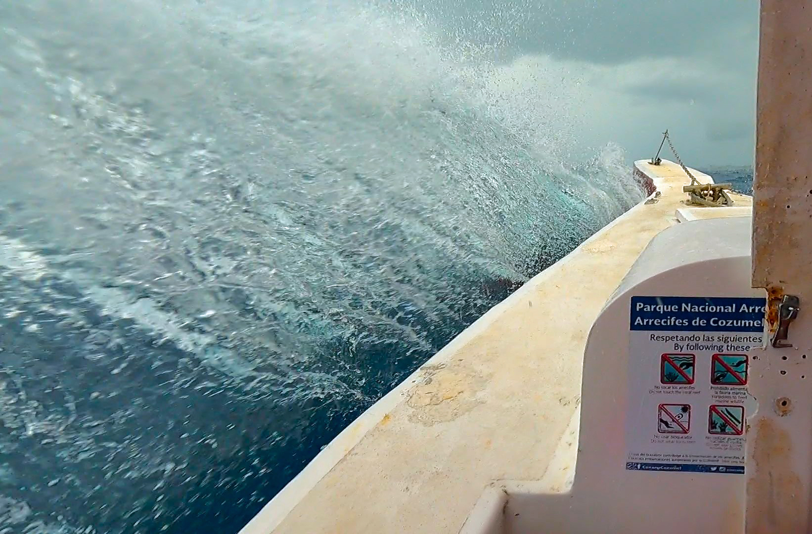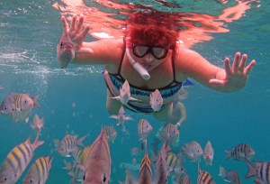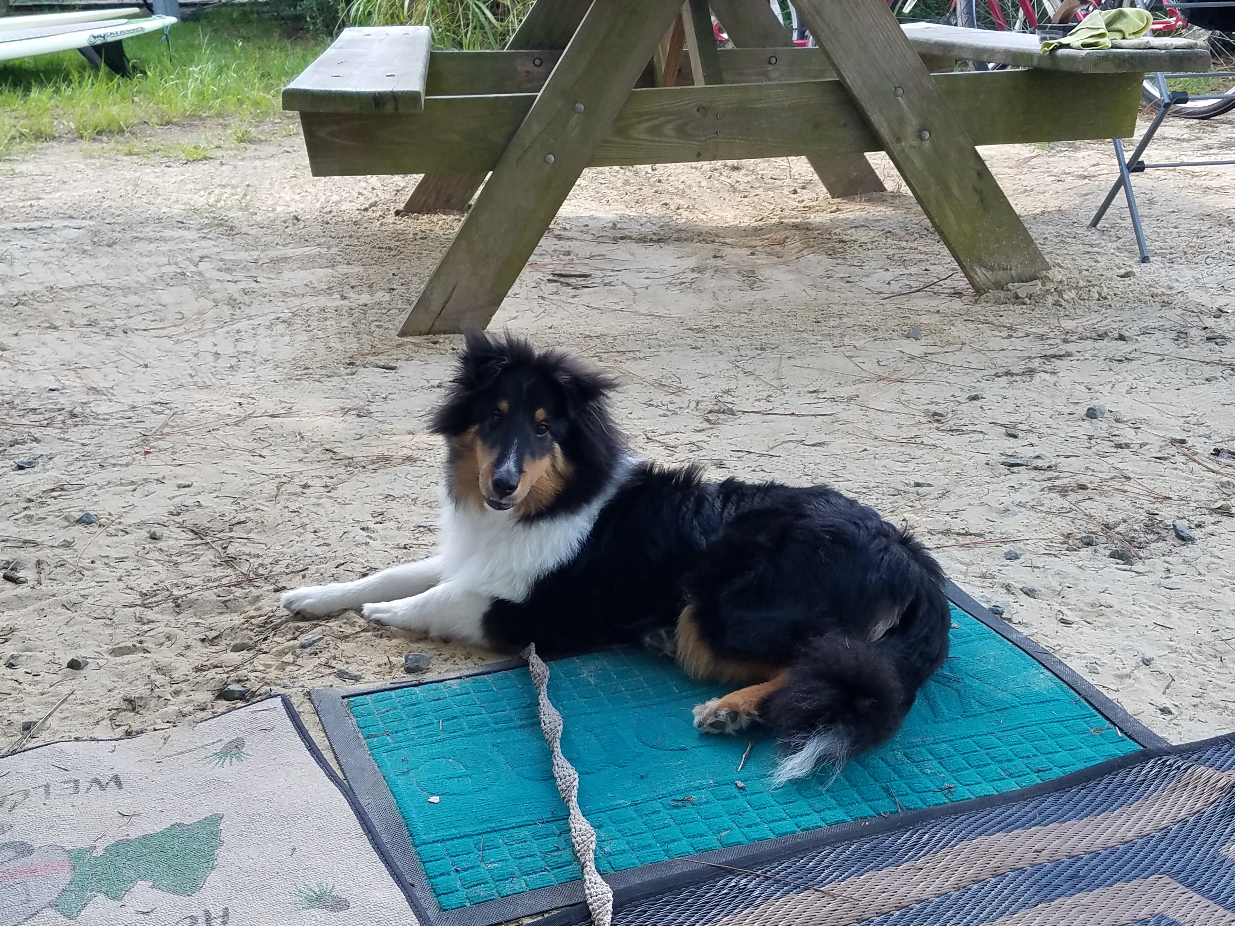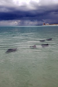Back at the beach landing we changed into our snorkel gear to check out the sea life. Turns out it was pretty stirred up and hard to see clearly, so we opted to slip off our fins and get out. As we were doing so, someone pointed out “octopus in the water”. Sure enough, there in the wave wash was a dark grey/purple octopus, maybe 12” across the spread tentacles. We watched a bit before it disappeared deeper into the water. How very exciting!