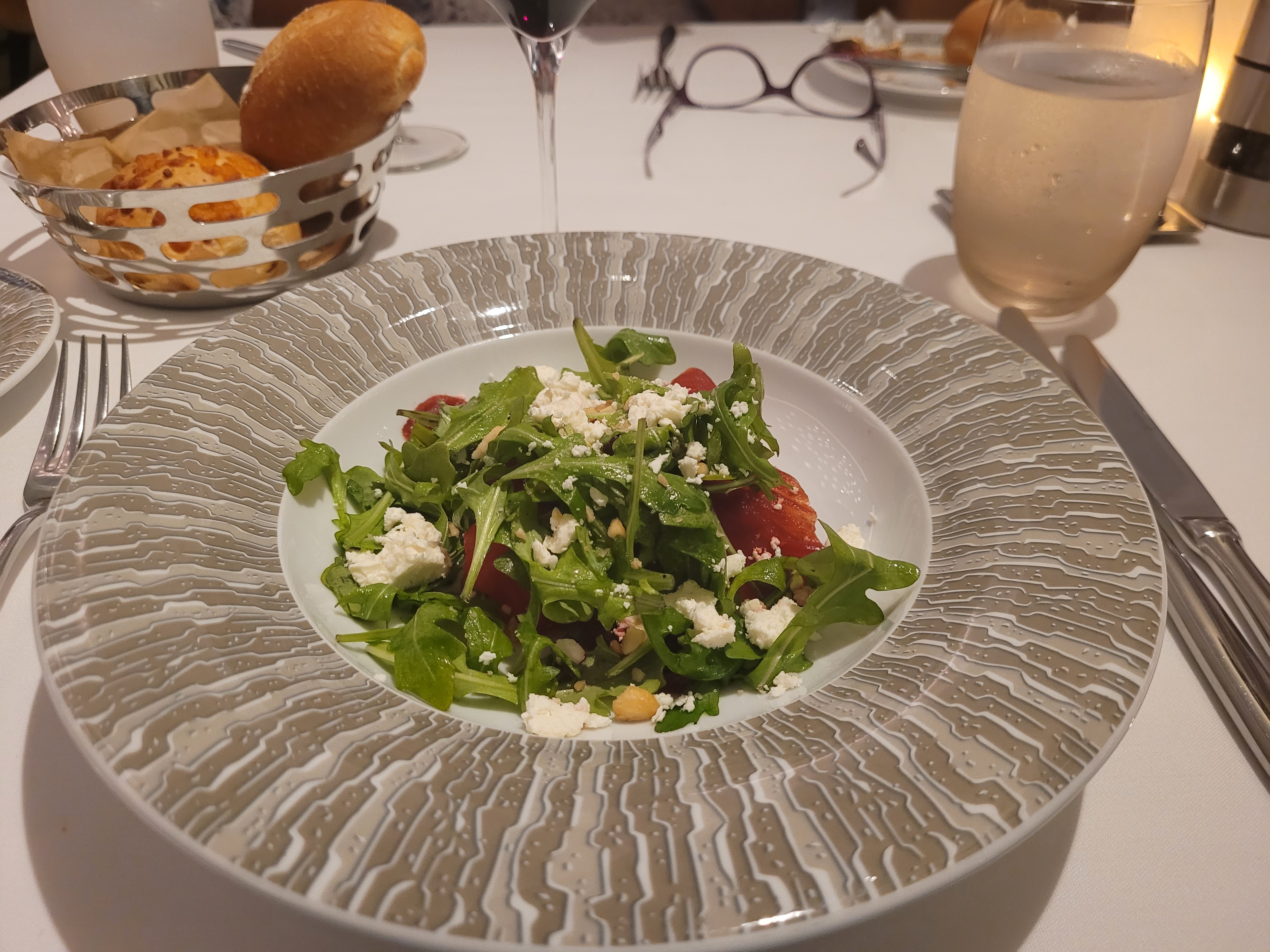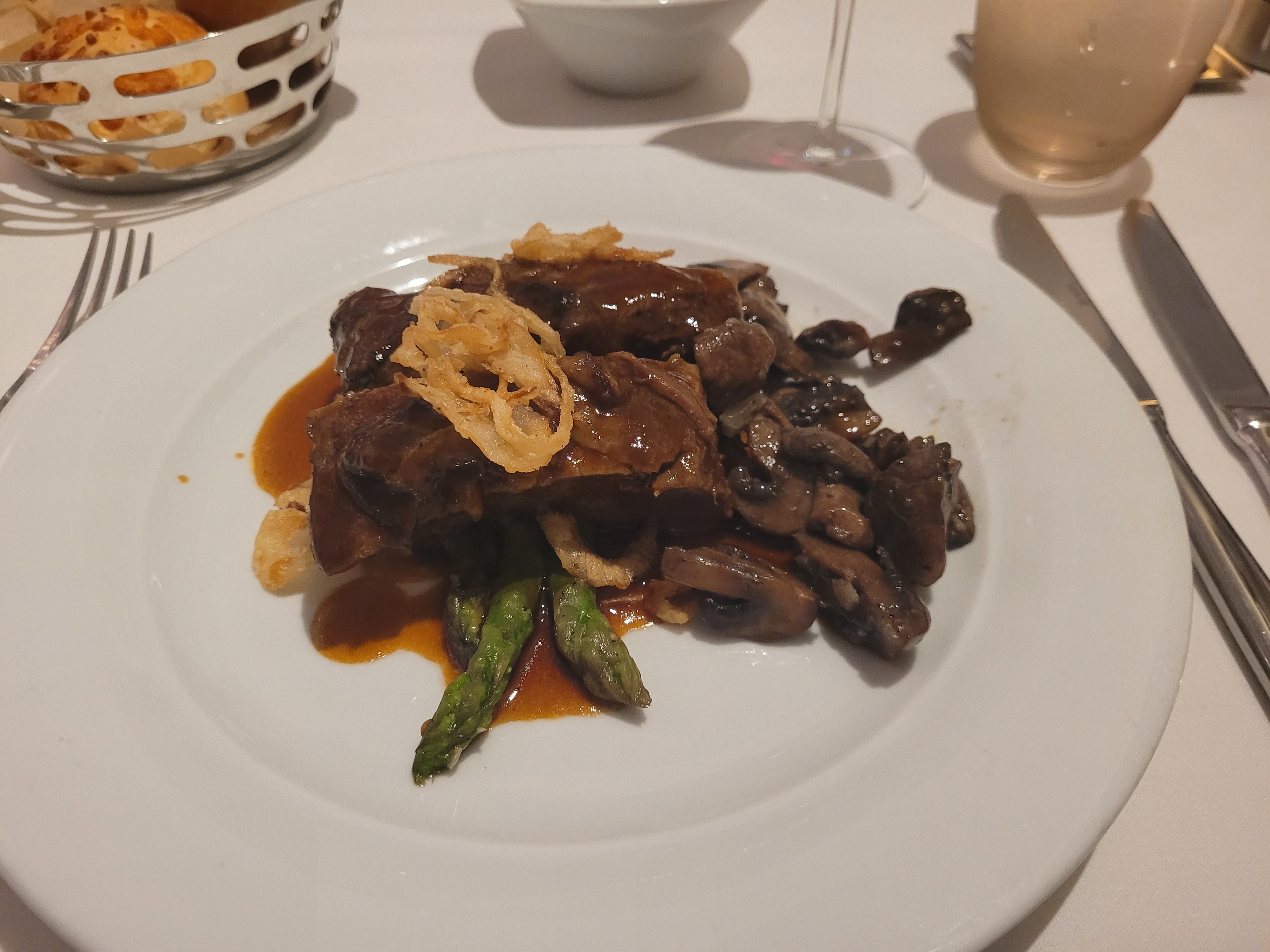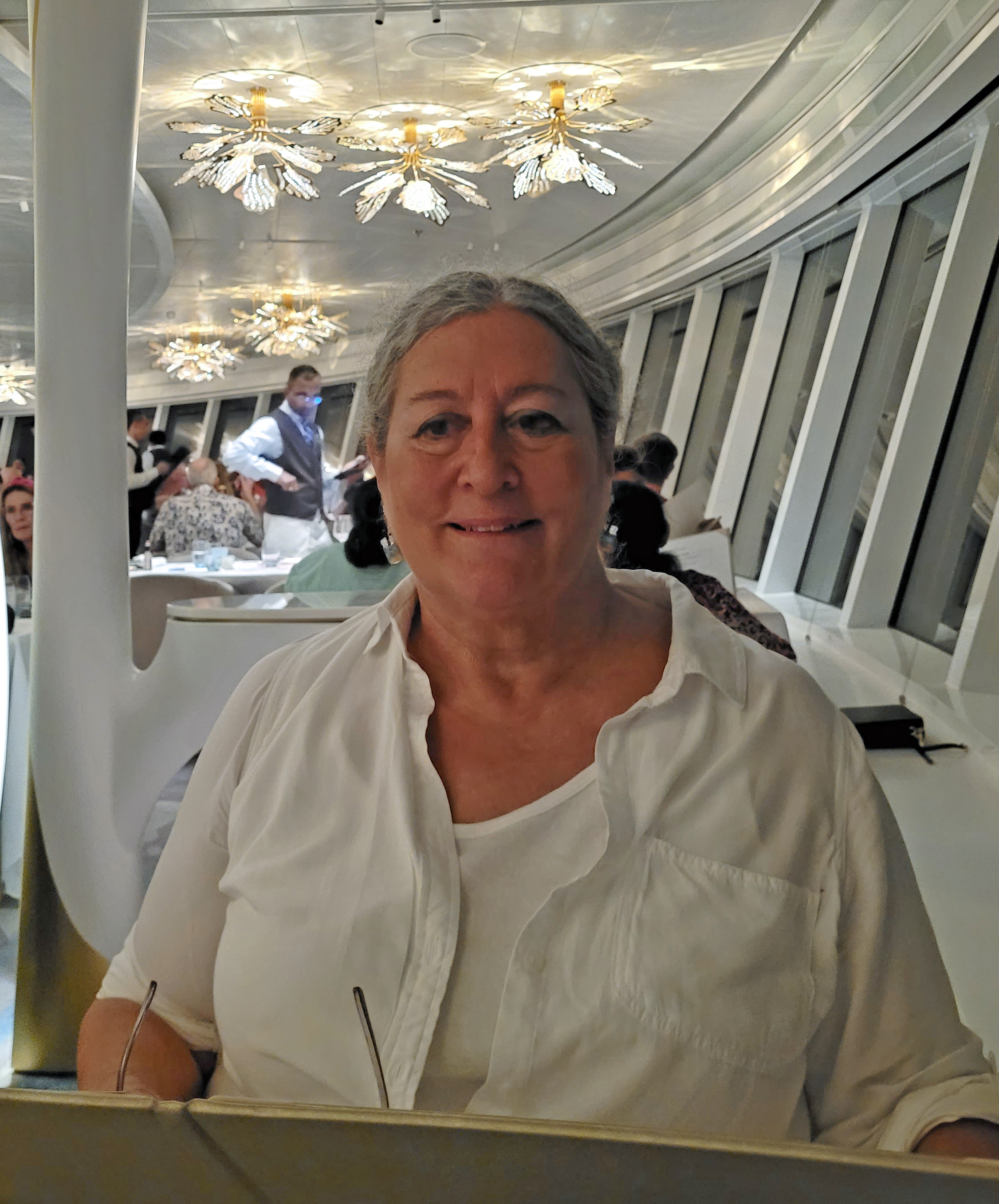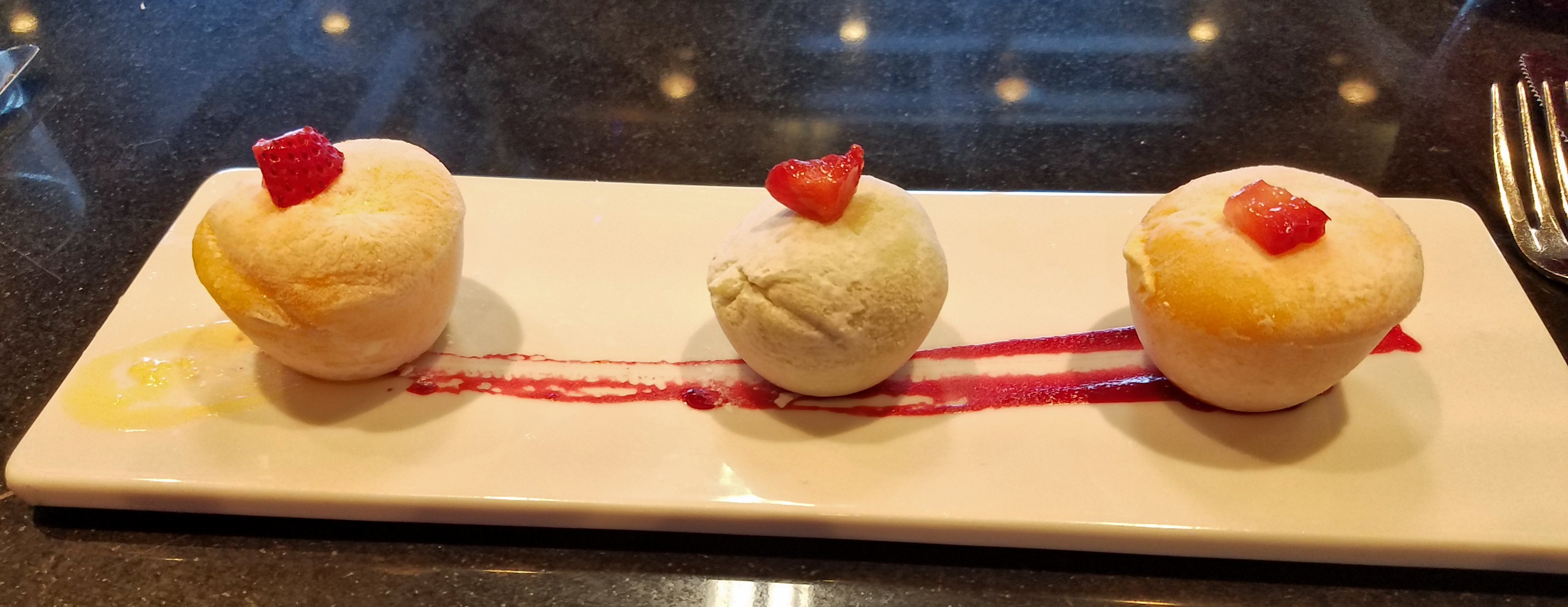 Speaking of luggage, our briefing before dinner was all about how to pack up before midnight, followed by a photo review of our week’s cruise adventure. Each of us received a jump drive with the powerpoint slide show to take back with us – and we toasted the entire crew with champagne. Dinner that night was special – a group of 12 of us who had become pretty close on the excursions asked to be seated together for the last night. It was a lot of fun, as we laughed and chatted about the adventures we all just experienced together. The meal was delicious, with most choosing the beef Wellington, while I had grilled octopus (sure hope it wasn’t the one we spotted). If I recall correctly, it was Ena and Al, Andy and Kristy, Carol and Kathy, Judy and Linda, Adam and Janice who joined us for that last meal (which seemed to have bottomless glasses of wine).