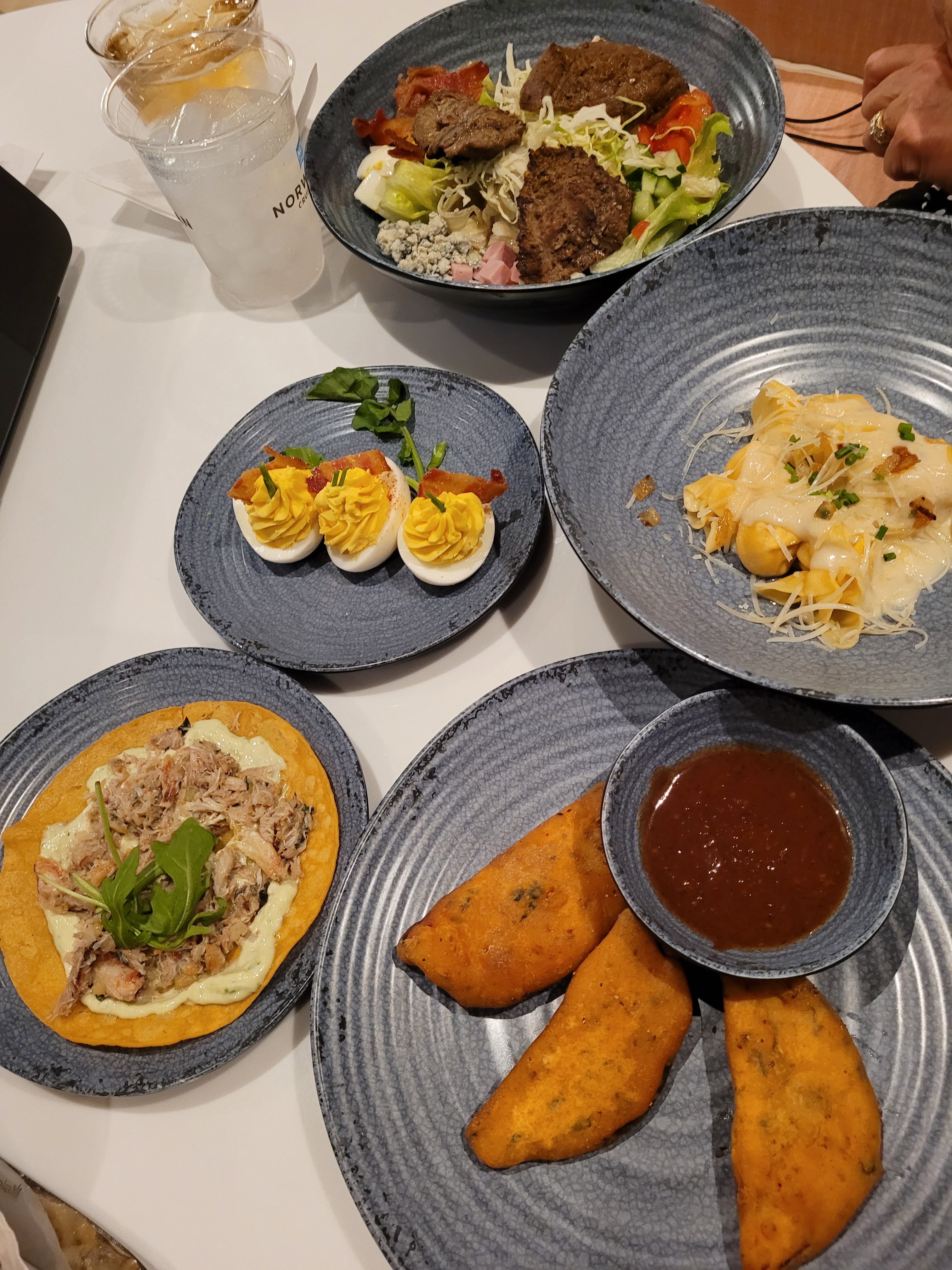 The chartered 2 hour flight back to Quito was just fine, with another delicious lunch served. One in Quito the group broke up in several ways. Some folks were headed to Peru for adventure, a few were going to the cloud forest in Ecuador and others had flights home a day later. We were part of the group that had an early flight back home the next morning, so we were escorted to a hotel near the airport: EB Hotel. This is a very posh euro style hotel that welcomed us with drinks (juice) and had wonderful rooms. Once again, the lobby was filled with large arrangements of long stemmed roses. Gorgeous. Dinner in their restaurant was included and once again I had grilled octopus with shrimp over fettucini, with coconut shrimp for appetizer and a chocolate mousse for dessert.