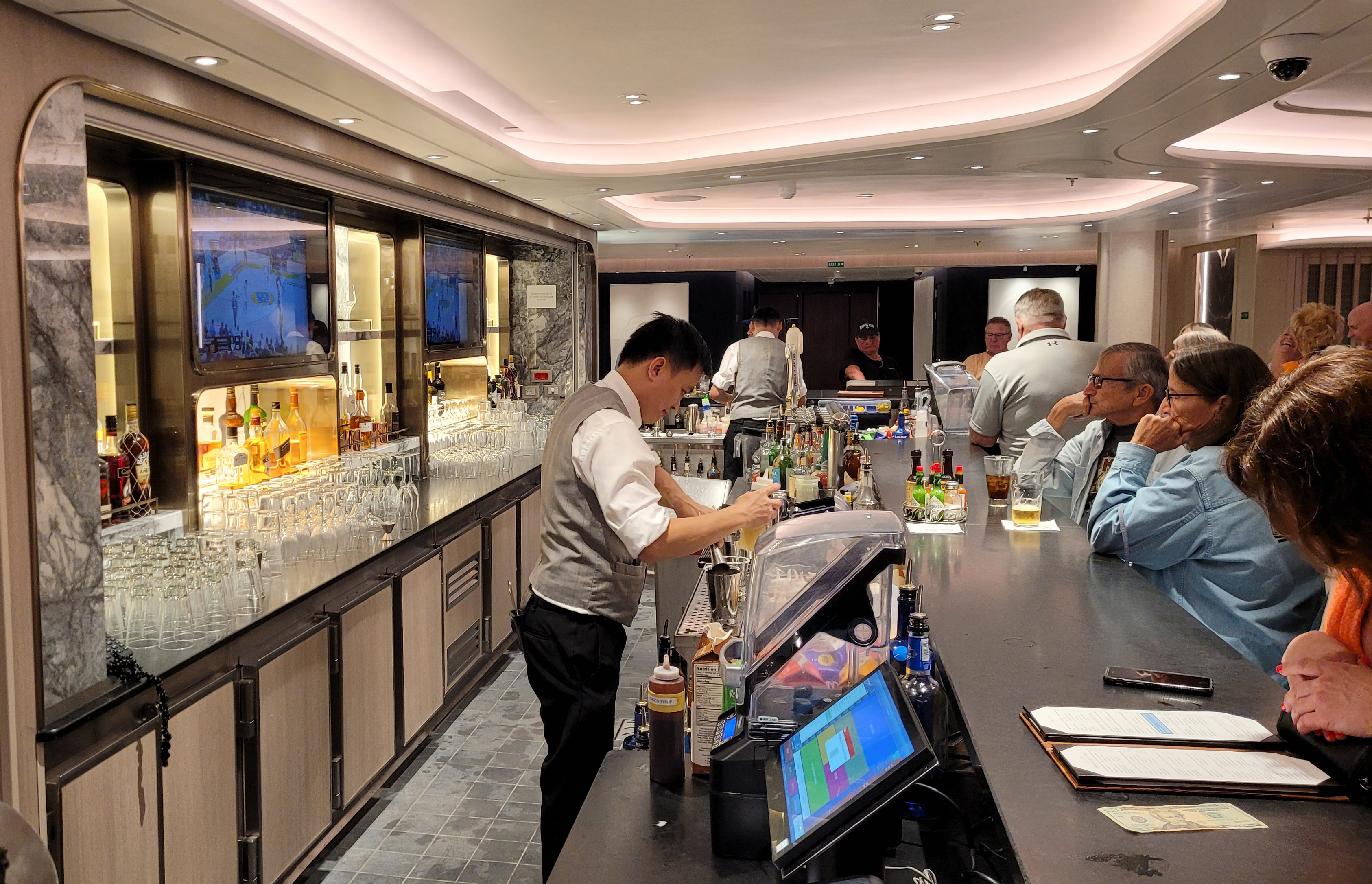 Onboard for the drink of the day – the Yellow Warbler (well at least I got the drink, if not the photo just yet) – dinner and then choices for tomorrow’s excursions. Jackie has been very careful on this trip with her dining choices, since she has an allergy to shellfish (crab, lobster, shrimp) that she wants to avoid. The cruise line was advised in advance and our servers have always asked, but somehow something was overlooked. She had a rough night and the next morning just wanted to stay in bed. I shared that with the maitre’d and he ordered up a bowl of chicken soup for her and followed up all day with how she was feeling.