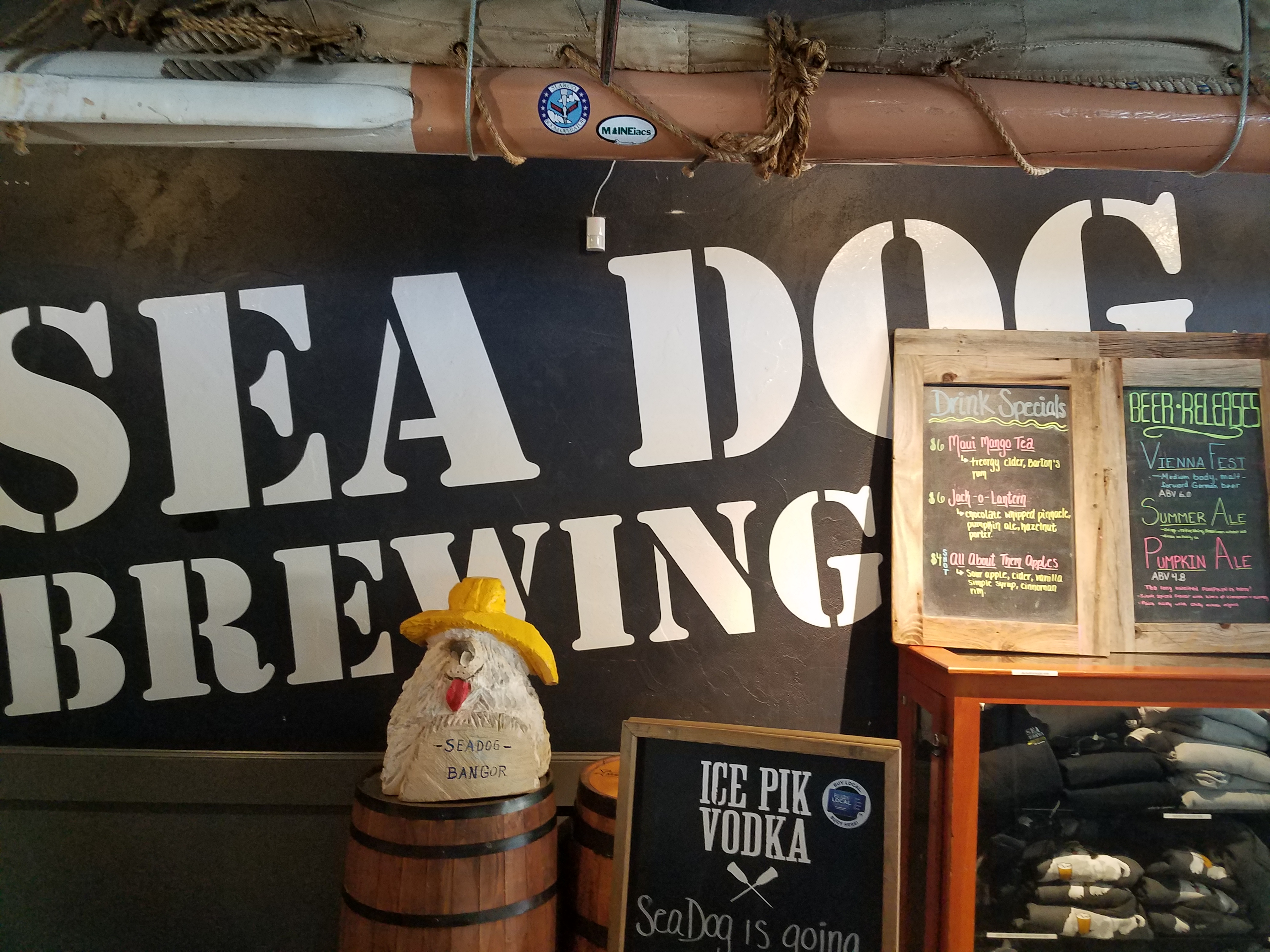 Well, we did get to dump, take a nice hot shower in the van and fill the water tank prior to our 6 day dry camping at Acadia National Park. No rain overnight, either. We pulled out and headed east under cloudy skies, but by Bangor it cleared to a blue sky sunny day. Yippee! Timing was great, since we got to Bangor just after noon and found a perfect free parking spot along the curb next to Sea Dog Brewpub. Ahhh, a flight of beer with lunch, how novel. Some nice choices, but we agreed that the Pumpkin Ale and Brown Ale were the best. We split a barbecue chicken flatbread and hit-the-spot cups of butternut squash bisque. It truly feels like fall with temps in the 50’s and all the associated flavors of the season. I even succumbed to the Pumpkin Spice craze with a box of PS mini shredded wheat. I must be nuts.