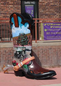 Approaching Cheyenne, we checked online to find a cool brewery was in town, and since it was lunchtime again, we headed downtown to find Accomplice Brewing in the old train depot. What a cool area that is being redeveloped. Cheyenne seems to like their cowboy boots, many of which are decorated around town.