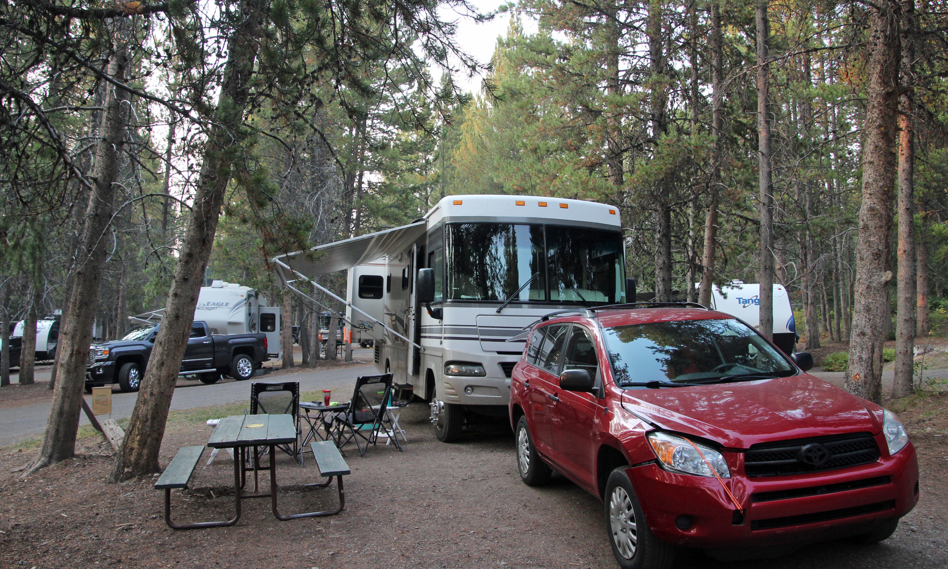Sixteen states, 5,700 miles, one dented-up Rav-4, one missing hubcap, three grizzly bears, one cracked windshield, seven moose, two bald eagles, six wolves, one AC compressor, three black bears, two weak house batteries, herds of buffalo, several geysers and a lot of hiking … are we the winners of the Amazing Race yet?